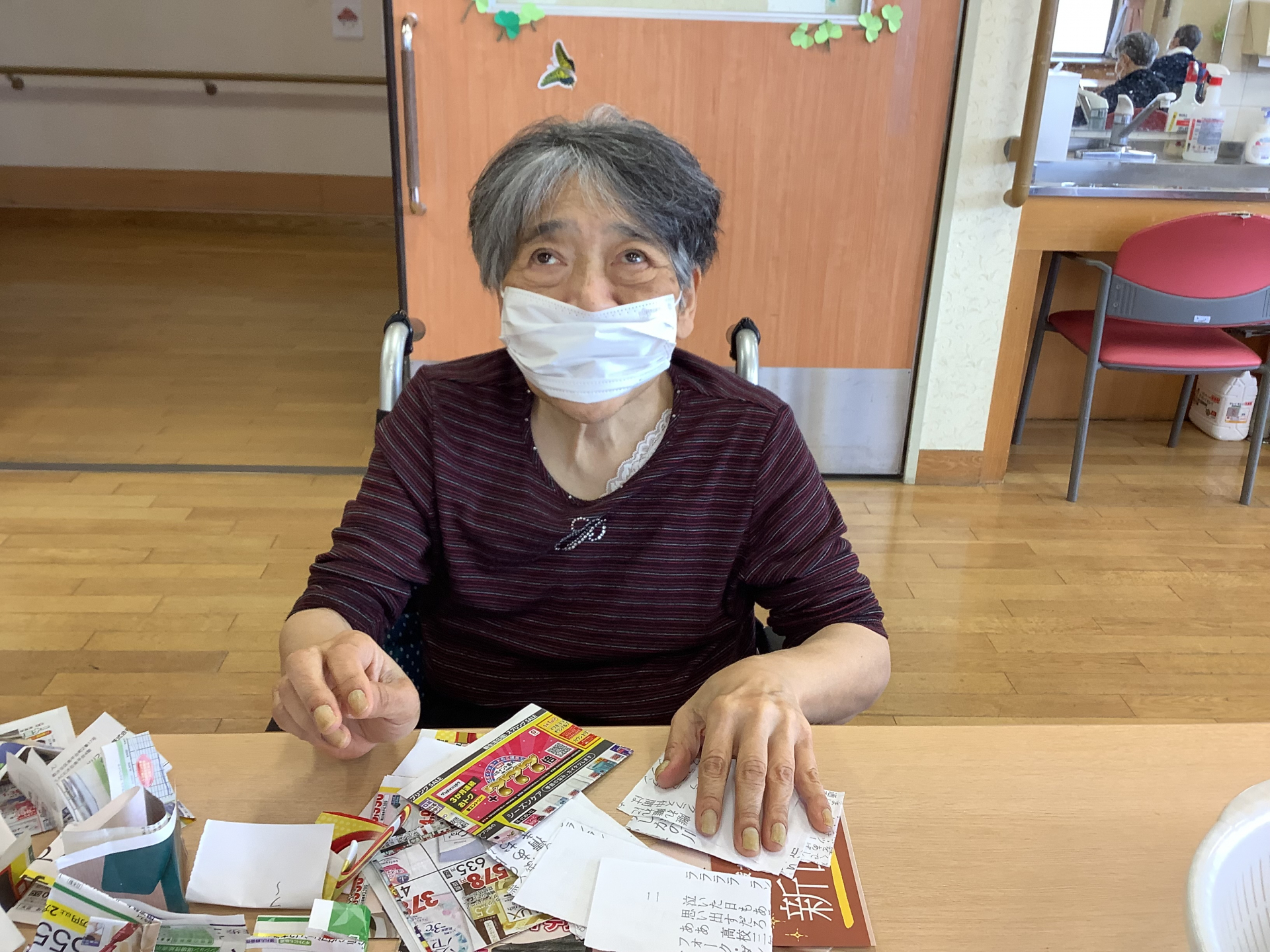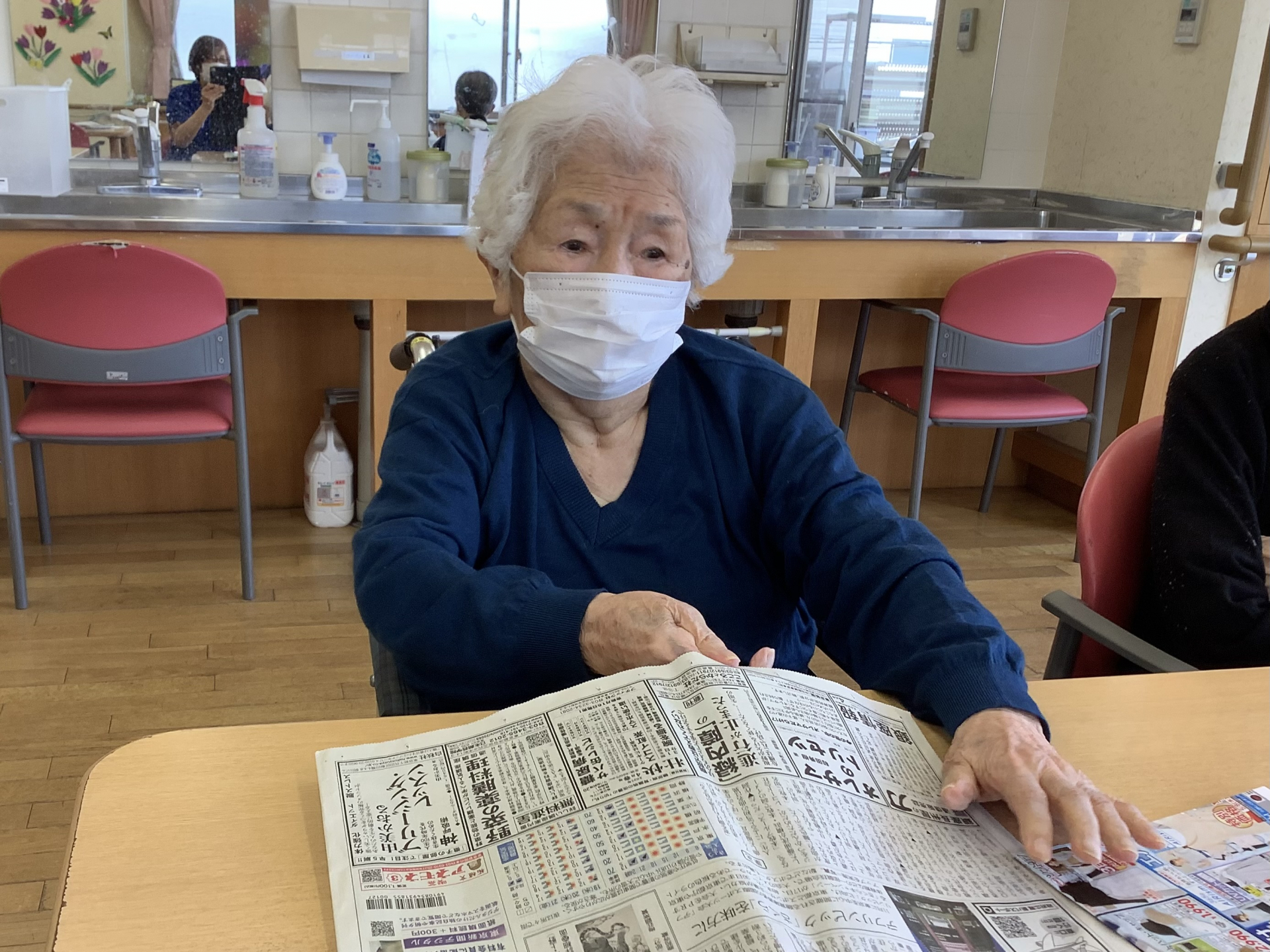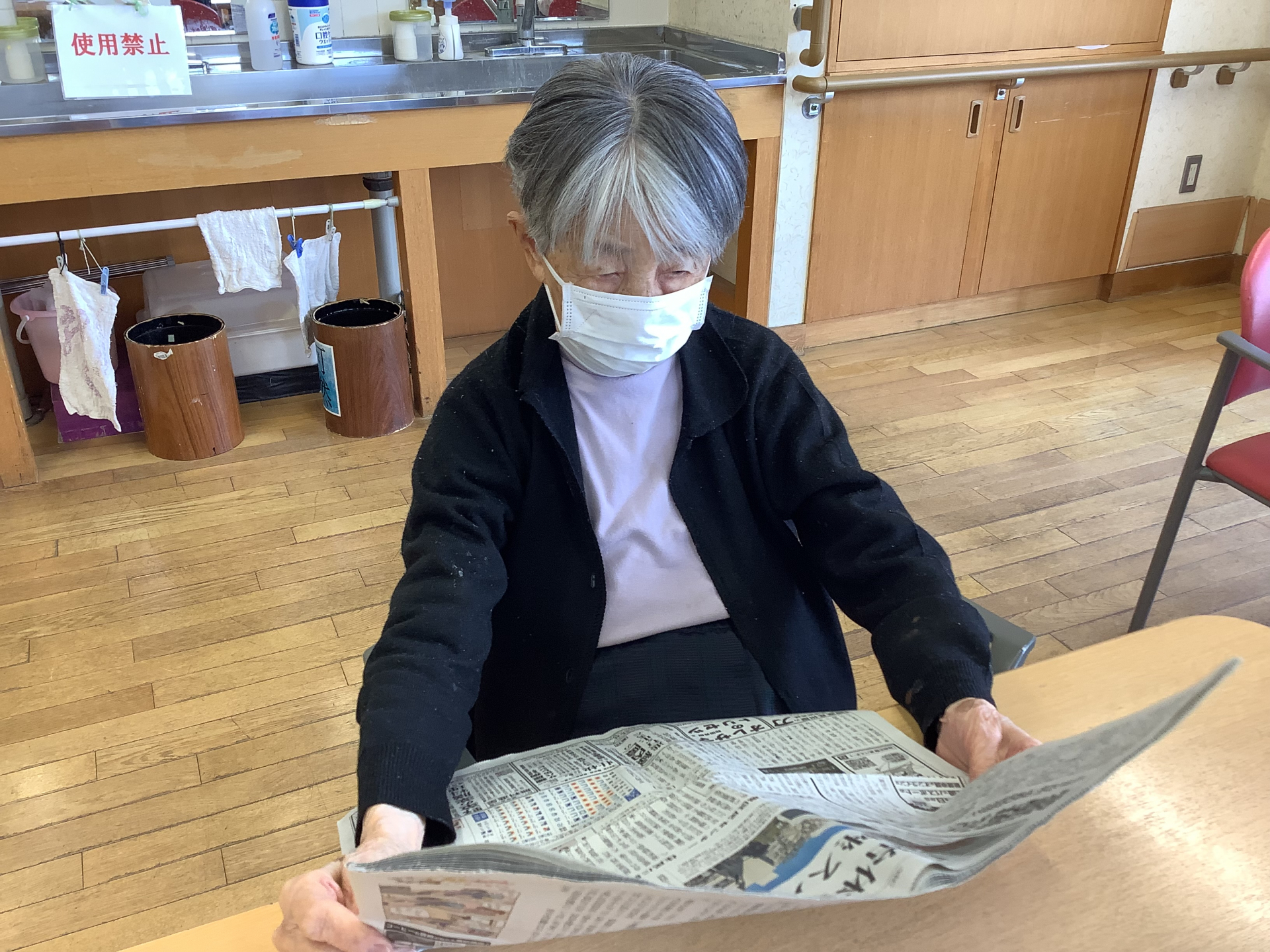 D様、来所されて早々に、テーブルの新聞を手に取られて、「うん、うん」と目を通されてました。