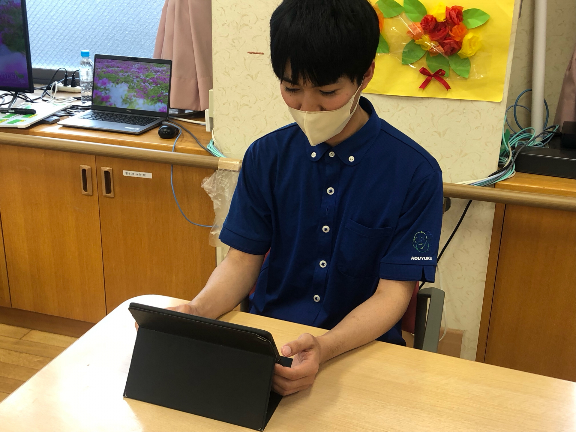ご家族のみなさまにできるだけ早く日中のご様子をお伝えしたいと、ホームページ担当者のみならずフロアの職員が一体となって、ホームページの更新に努めています。