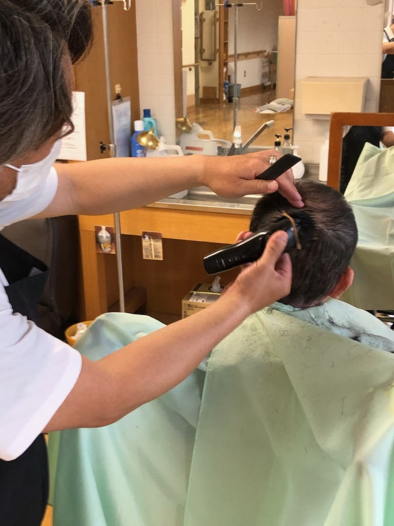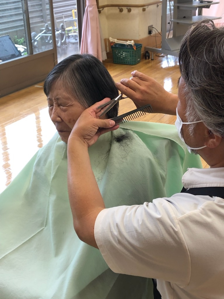 きょうは、ヘアカットサービス、「宮前理髪店」の開催日。
