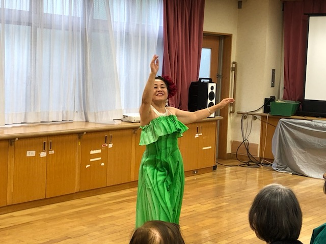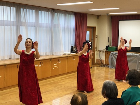 きょうの午後は、「フラ リノリノアーヌエヌエ」のみなさんによる、「フラダンスショー」を開催しました。