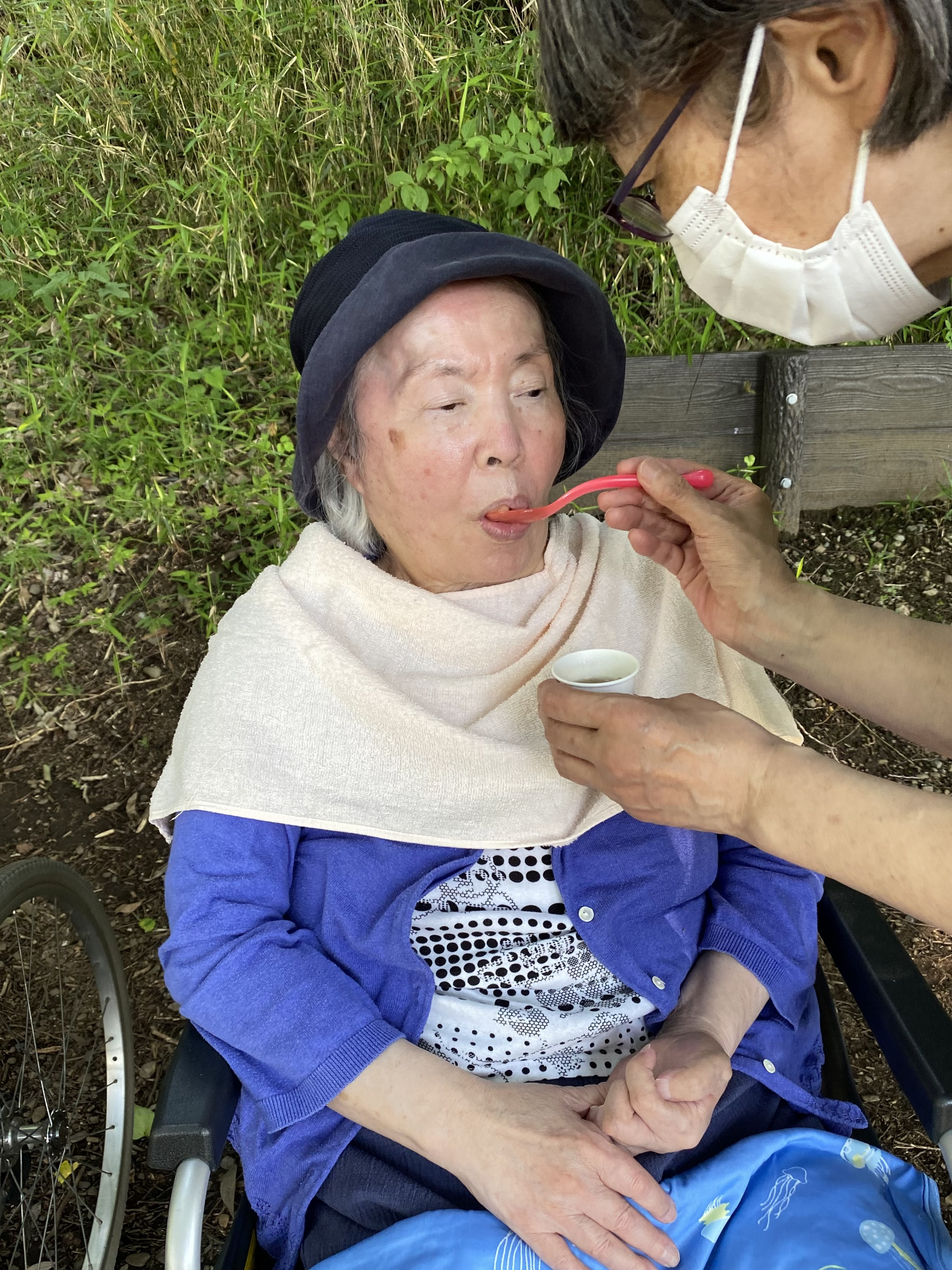 「やっぱり、紅茶はホッとするね」と木陰で一息つきました。