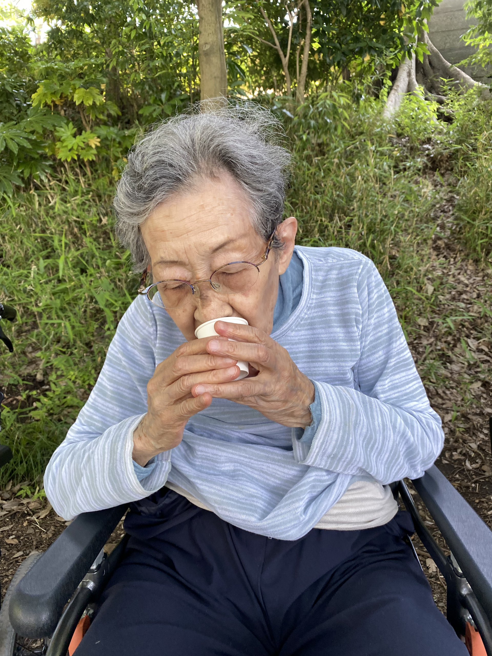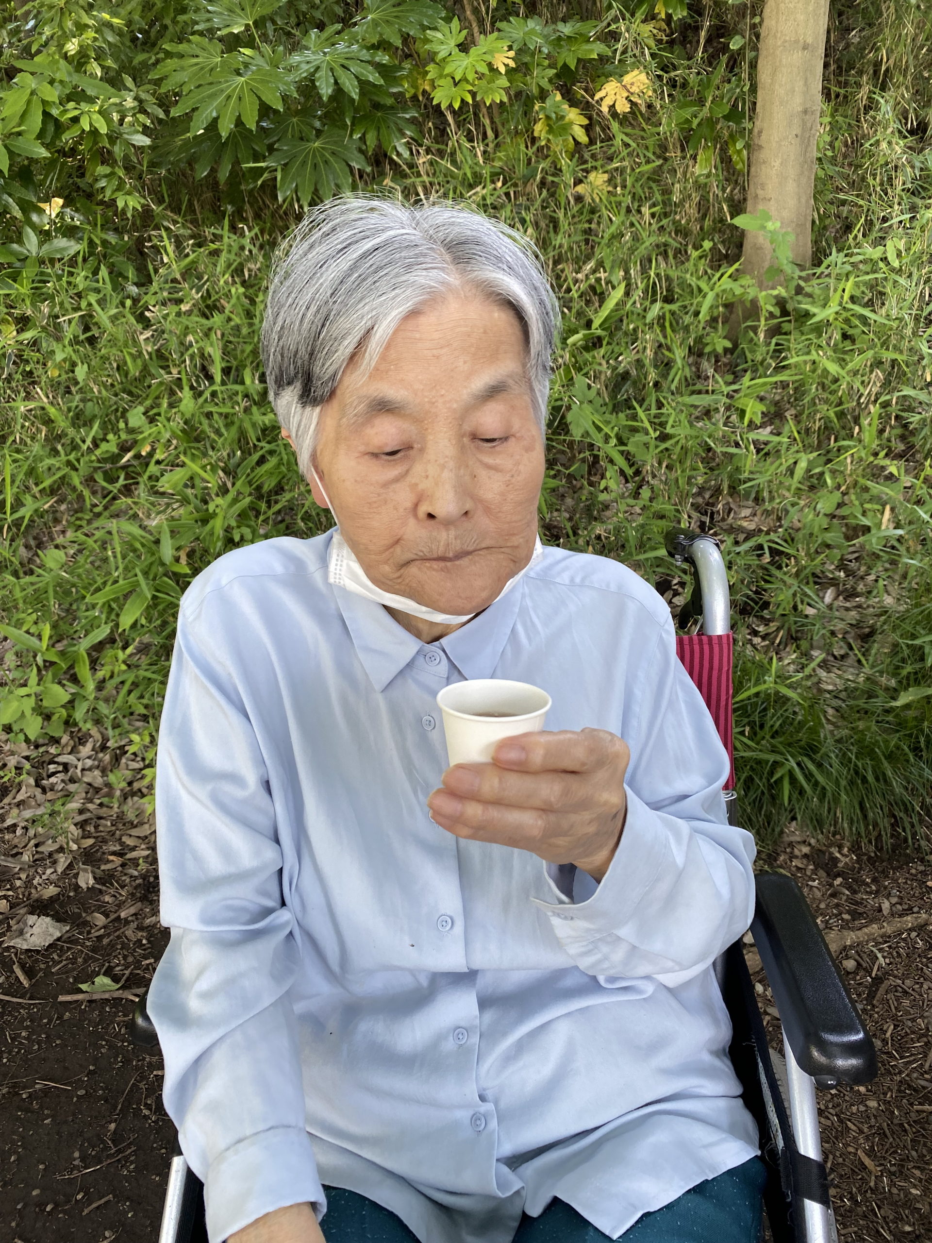 「やっぱり、紅茶はホッとするね」と木陰で一息つきました。