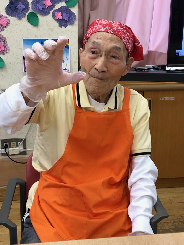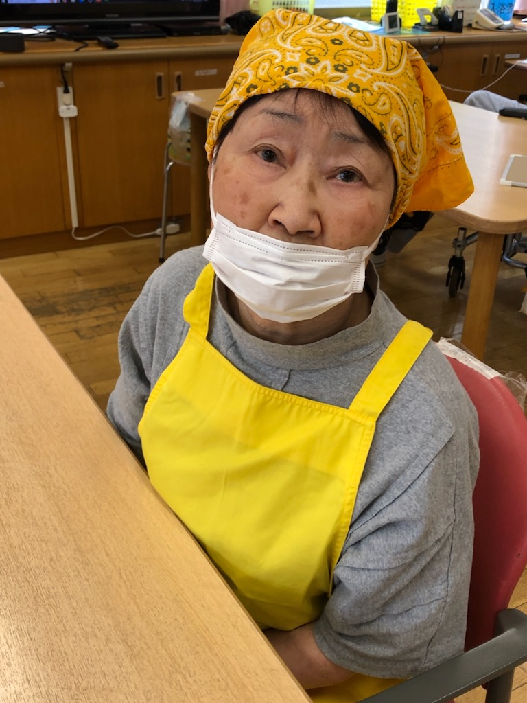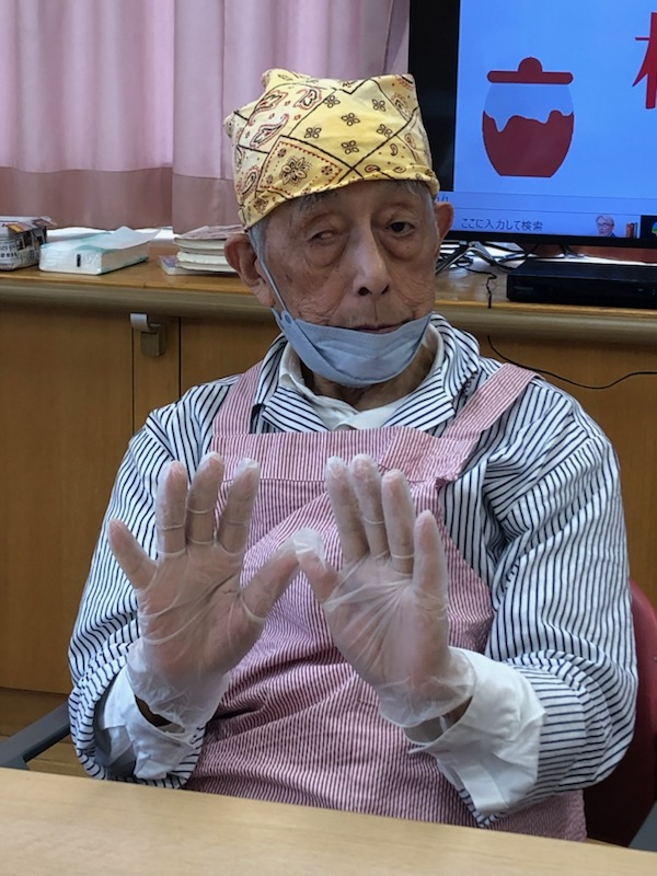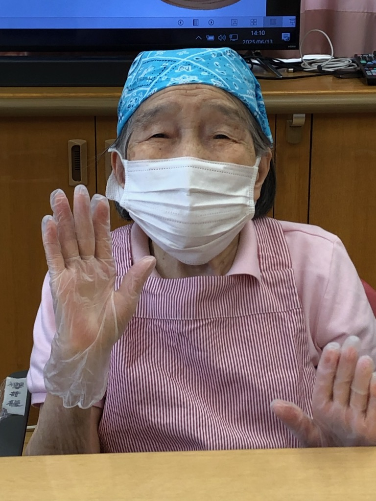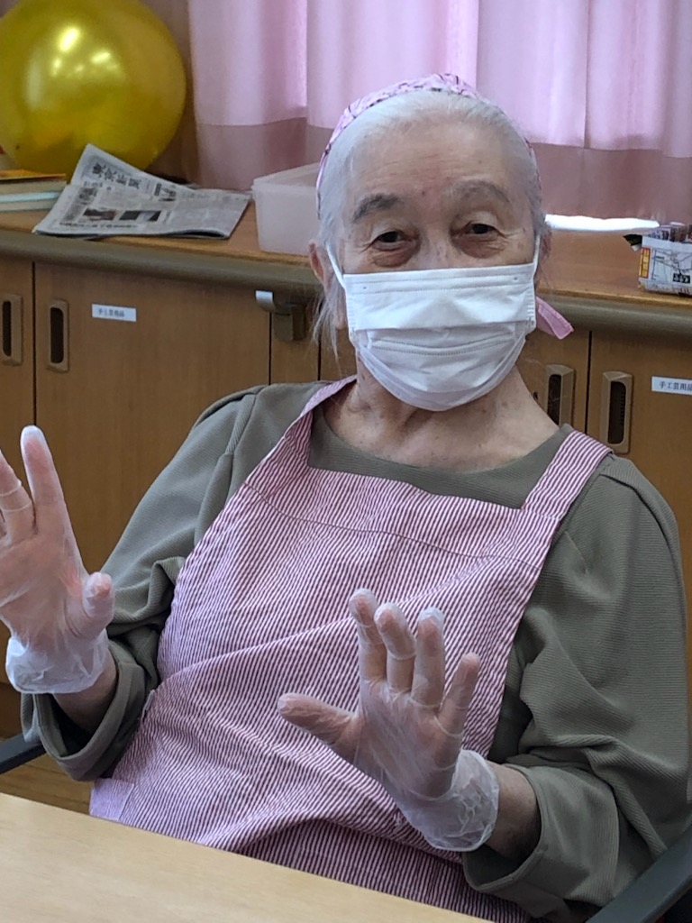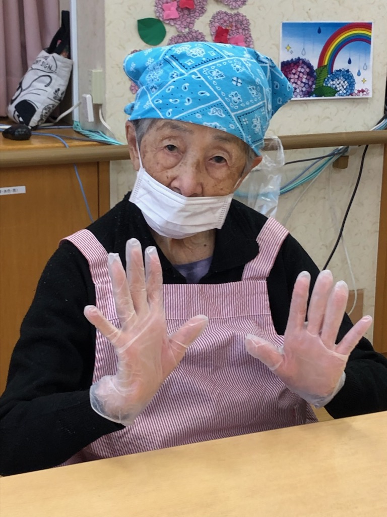エプロンに三角巾、手にはグローブを付けて作業に準備もできました。