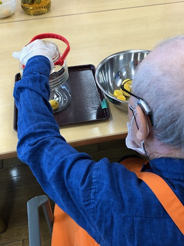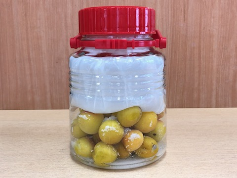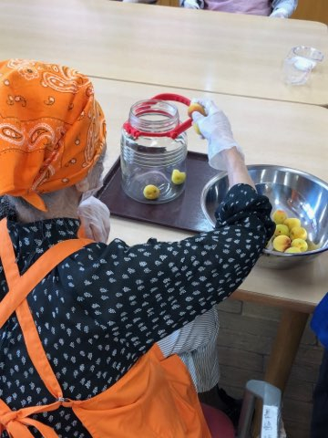 ヘタ(ホシ)を取った梅は、各々、瓶の中に入れていただきました。