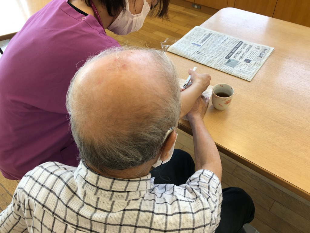 認知デイでは、浴後や朝の健康チェックの際に、「看護師による爪切り」を行っています。