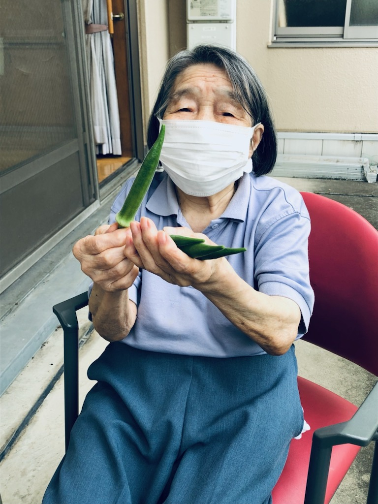2025.07.11 活動報告 夏野菜の収穫 Tweet シェアする きょうの夏野菜の収穫は、おふたりにお願いしました。 A様には「オクラ」、 B様には「トマト」の収穫をお願いしました。 「オクラ」は、今年の初物です。 生活相談員 S 前の記事 2025.07.11 活動報告 お帰り前の時間~入浴用のタオル畳み! 次の記事 2025.07.11 活動報告 見守り新鮮情報 一覧へ戻る