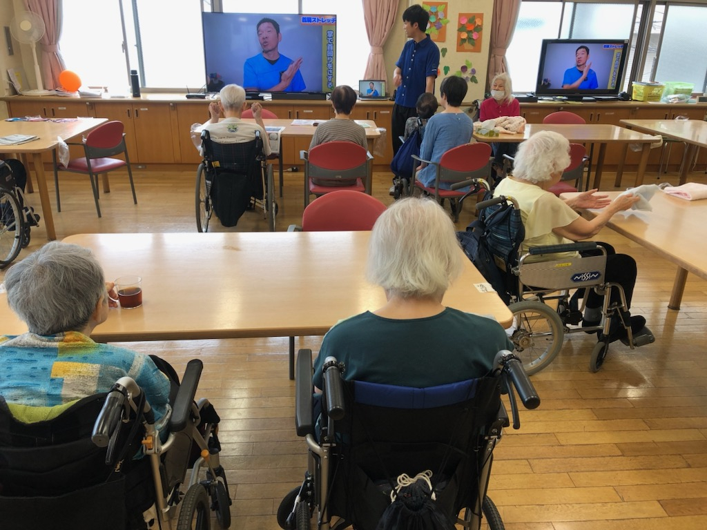 2025.07.14 活動報告 フロアの様子!実況中継!! Tweet シェアする 只今のフロアの様子です。 本日は、17名のみなさんにご利用いただいています。 ご紹介している写真は、お食事前の「口腔体操」の模様です。 生活相談員 S 前の記事 2025.07.14 活動報告 口腔ケアの様子 次の記事 2025.07.11 活動報告 お帰り前の時間~入浴用のタオル畳み! 一覧へ戻る