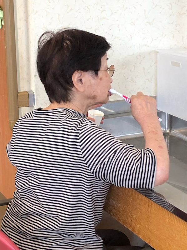 昼食後の「口腔ケア」の模様です。