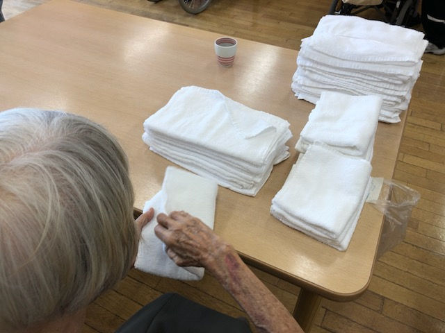 2025.07.15 活動報告 役割支援~タオルたたみ~ Tweet シェアする きょうは、A様に「タオルたたみ」をお願いしました。 快く、「いつでもお手伝いしますよ」と、お話しくださいました。 生活相談員 S 前の記事 2025.07.15 活動報告 調理プログラム~フルーチェ作り~ 次の記事 2025.07.14 活動報告 夏野菜の収穫 一覧へ戻る