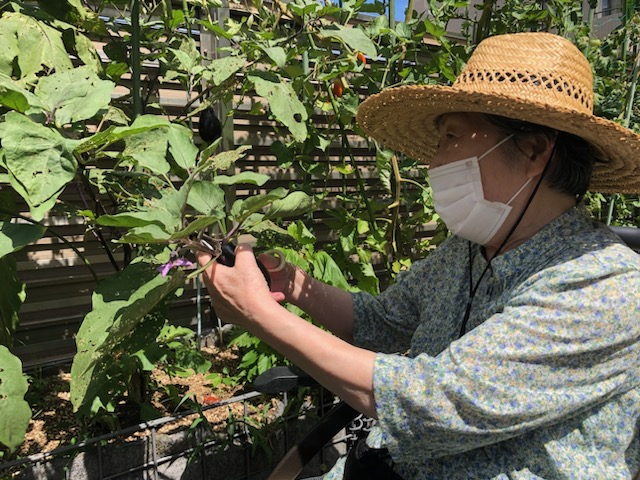 2025.07.18 活動報告 夏野菜の収穫 Tweet シェアする きょうの夏野菜の収穫は、A様に「茄子」、 B様には「オクラ」をお願いしました。 生活相談員 S 前の記事 2025.07.21 活動報告 熱中症警戒アラート発表中 次の記事 2025.07.18 活動報告 「小玉スイカ」み~つけた! 一覧へ戻る