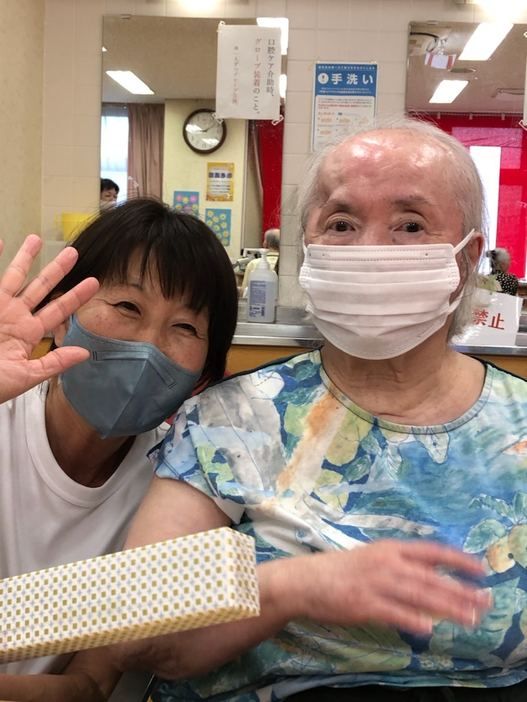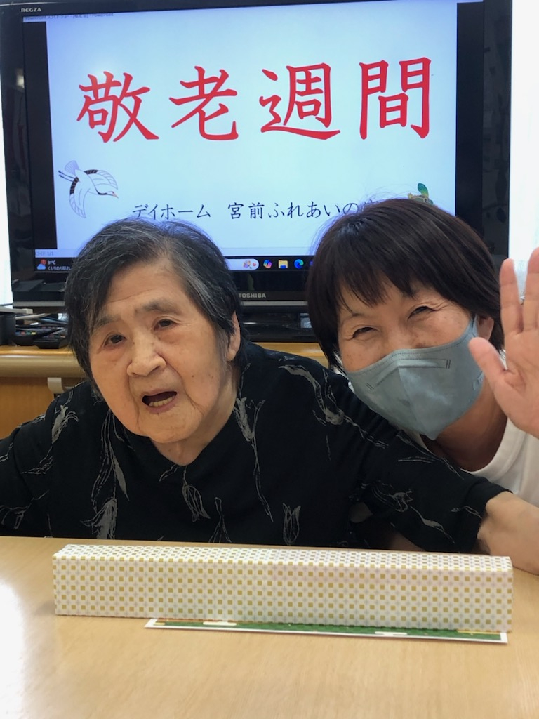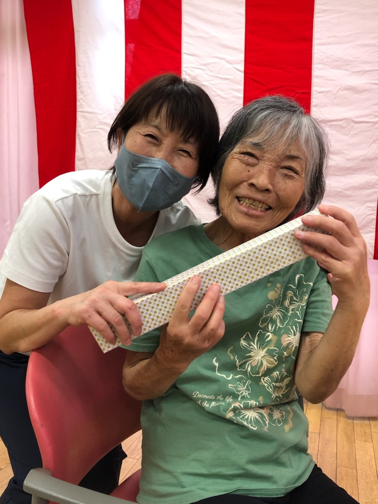 午後、おやつの時間の前に、事業所責任者より「敬老の日の記念品」の贈呈を行いました。