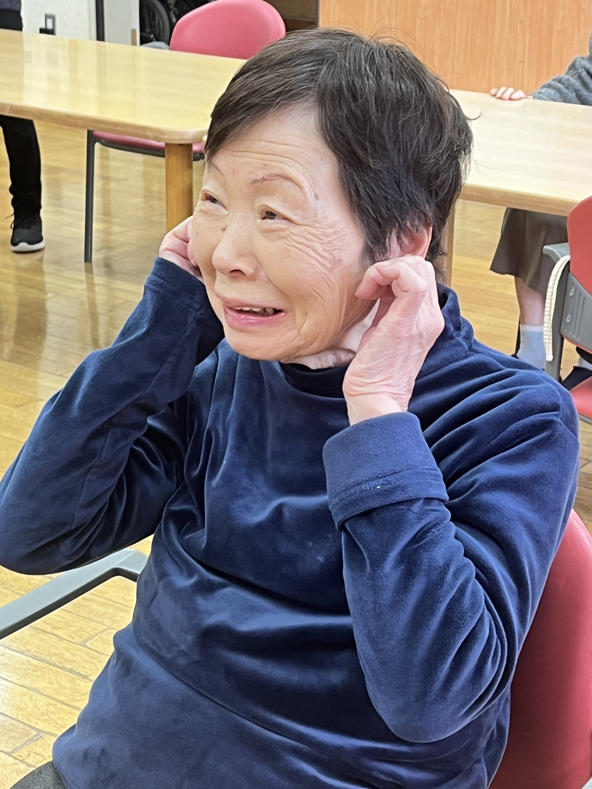 次は、耳の体操です!耳の体操には、耳を引っ張る、折り曲げる、円を描くように回す、手のひらで覆うなど、さまざまな方法があります。