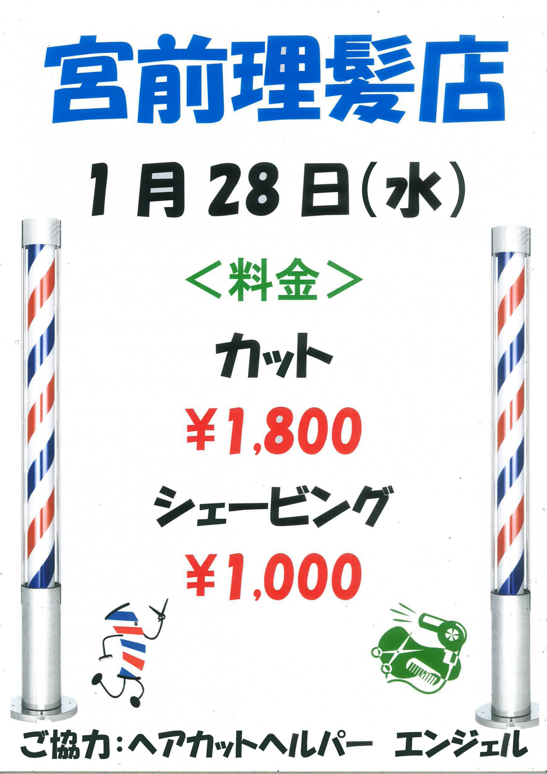 今月も、ヘアカットサービス「宮前理髪店」を開催いたします。