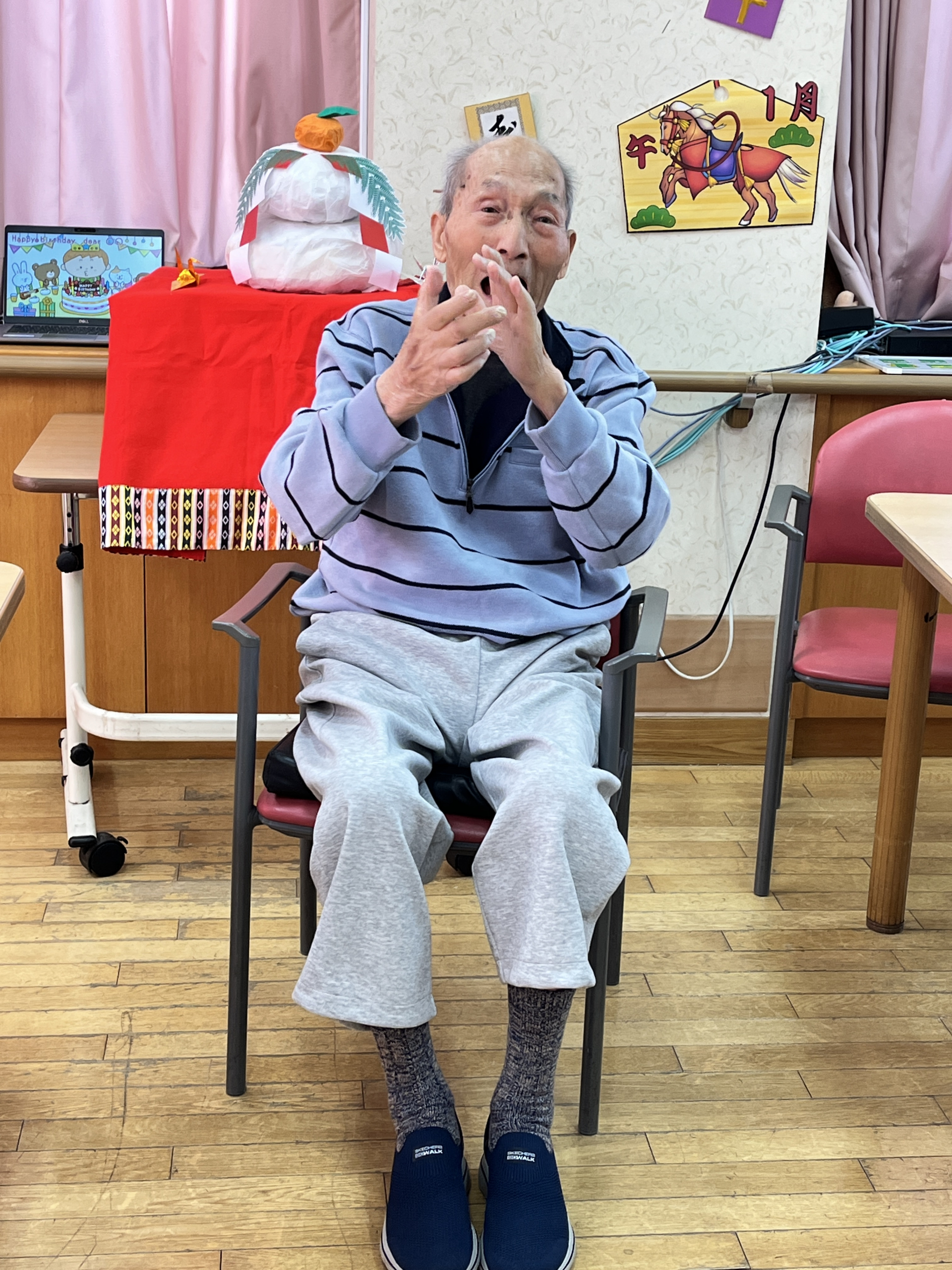 利用者と職員でハッピーバースデー歌を歌ってお誕生日をお祝いました♪