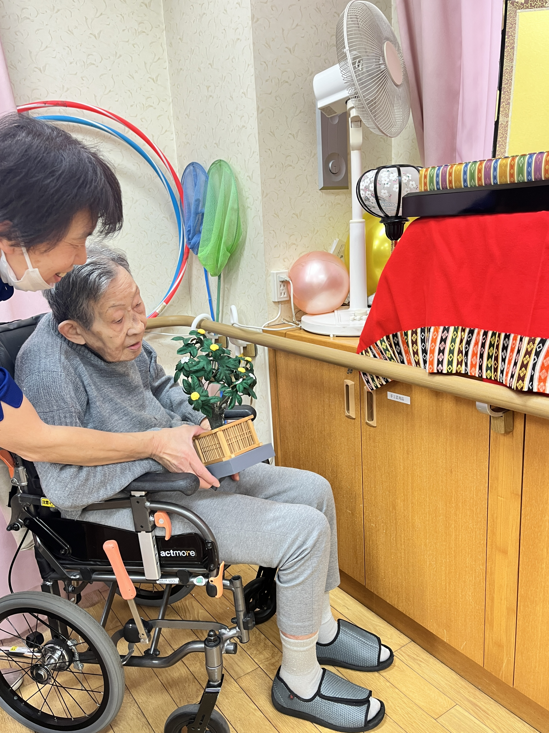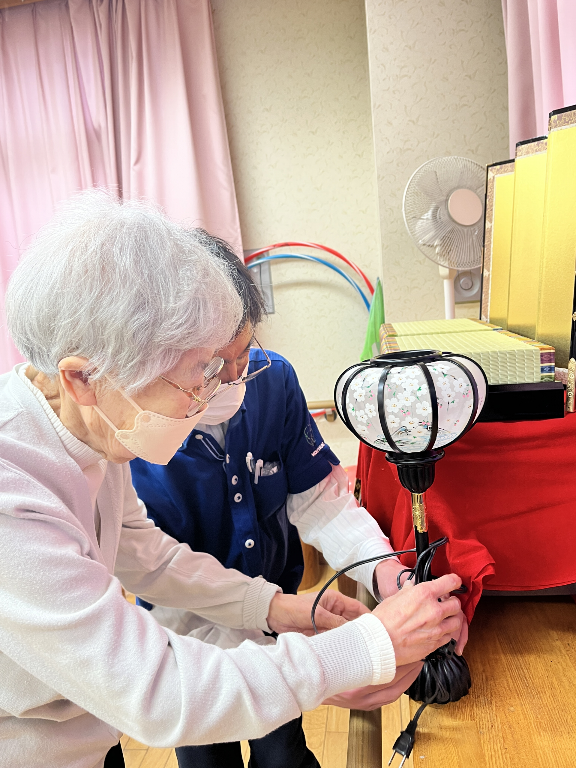 利用者様でぼんぼり、お花、お花、お王様、お姫様など飾りました〜