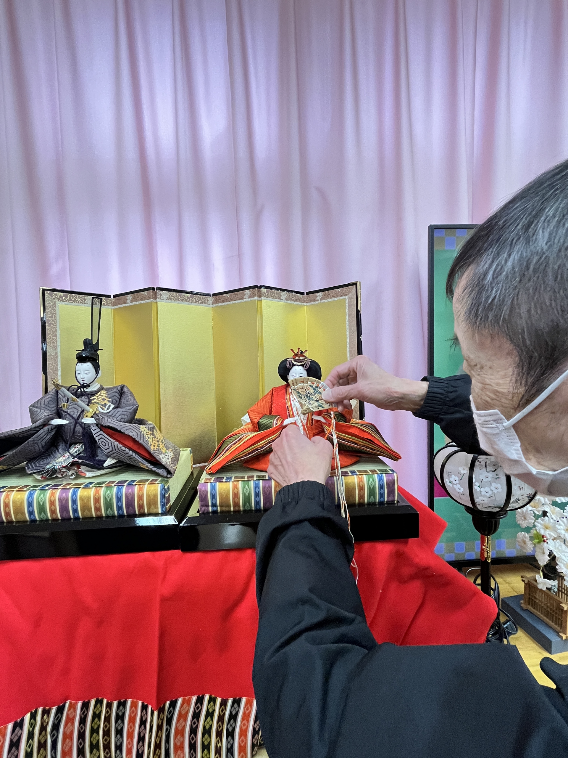 来月3月3日はひな祭り。季節を感じられるレクリエーションとしてお雛様飾りを行いました〜