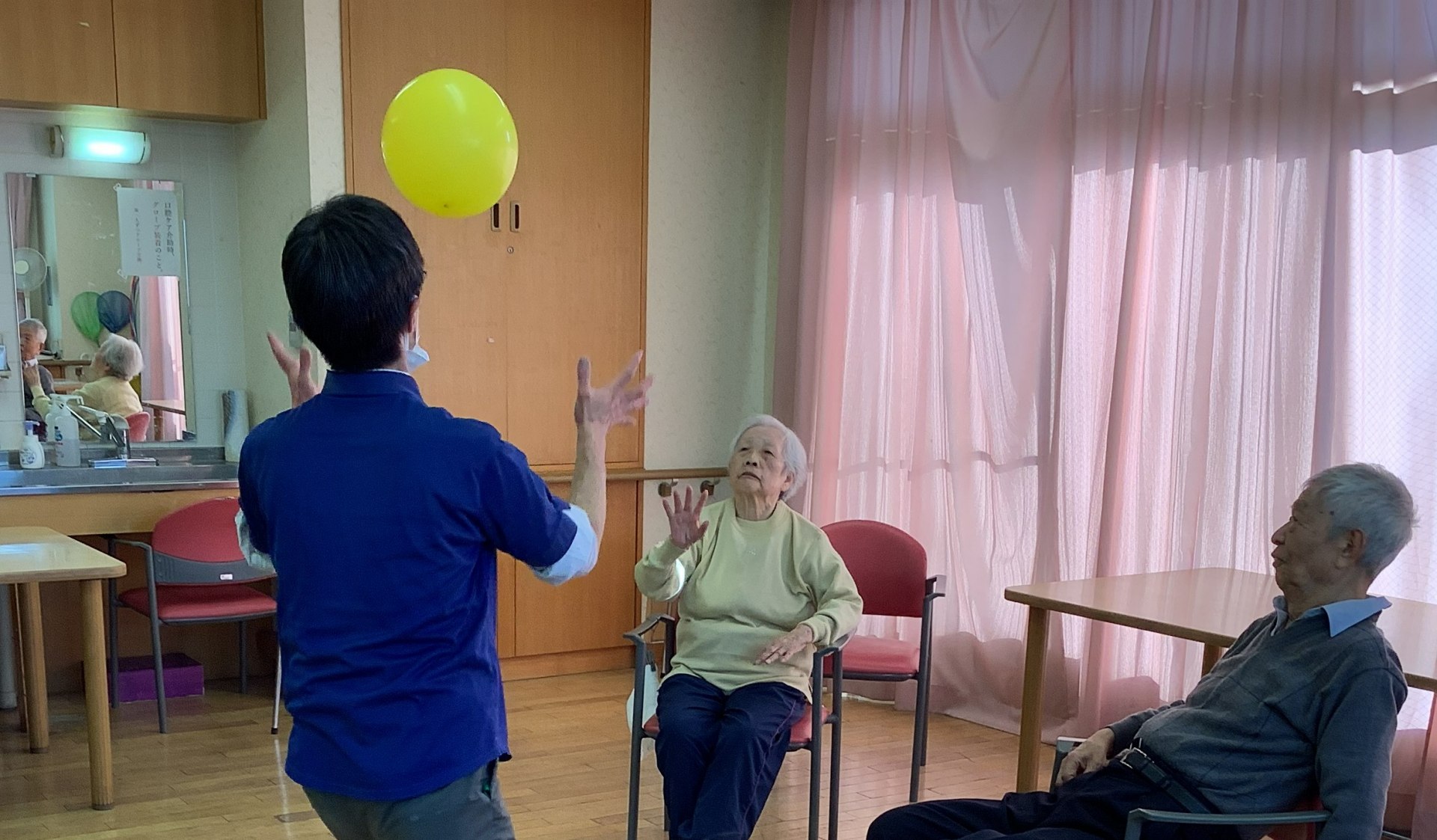ご利用者様一人一人職員がパスした風船をうまく返されておりました。