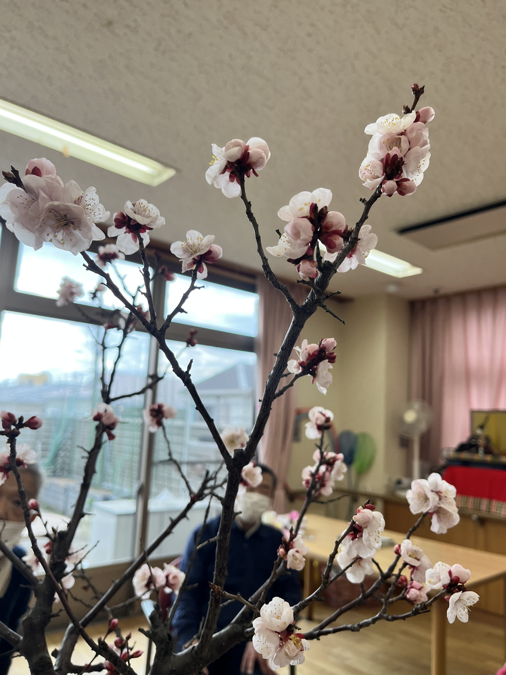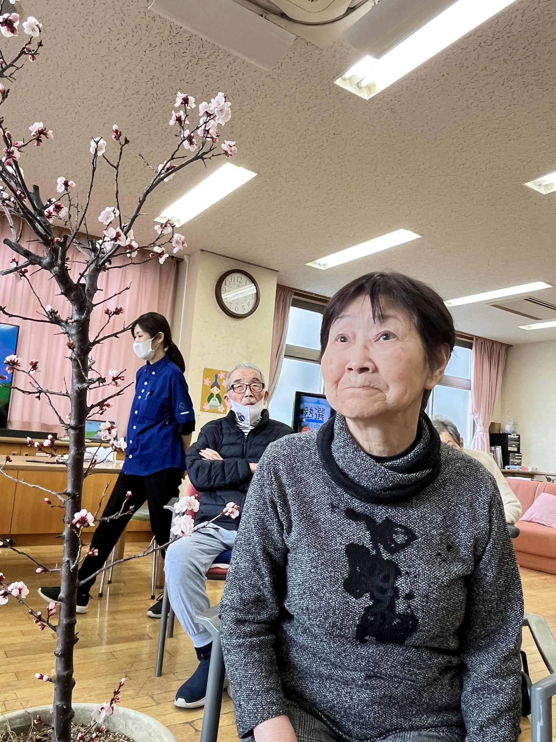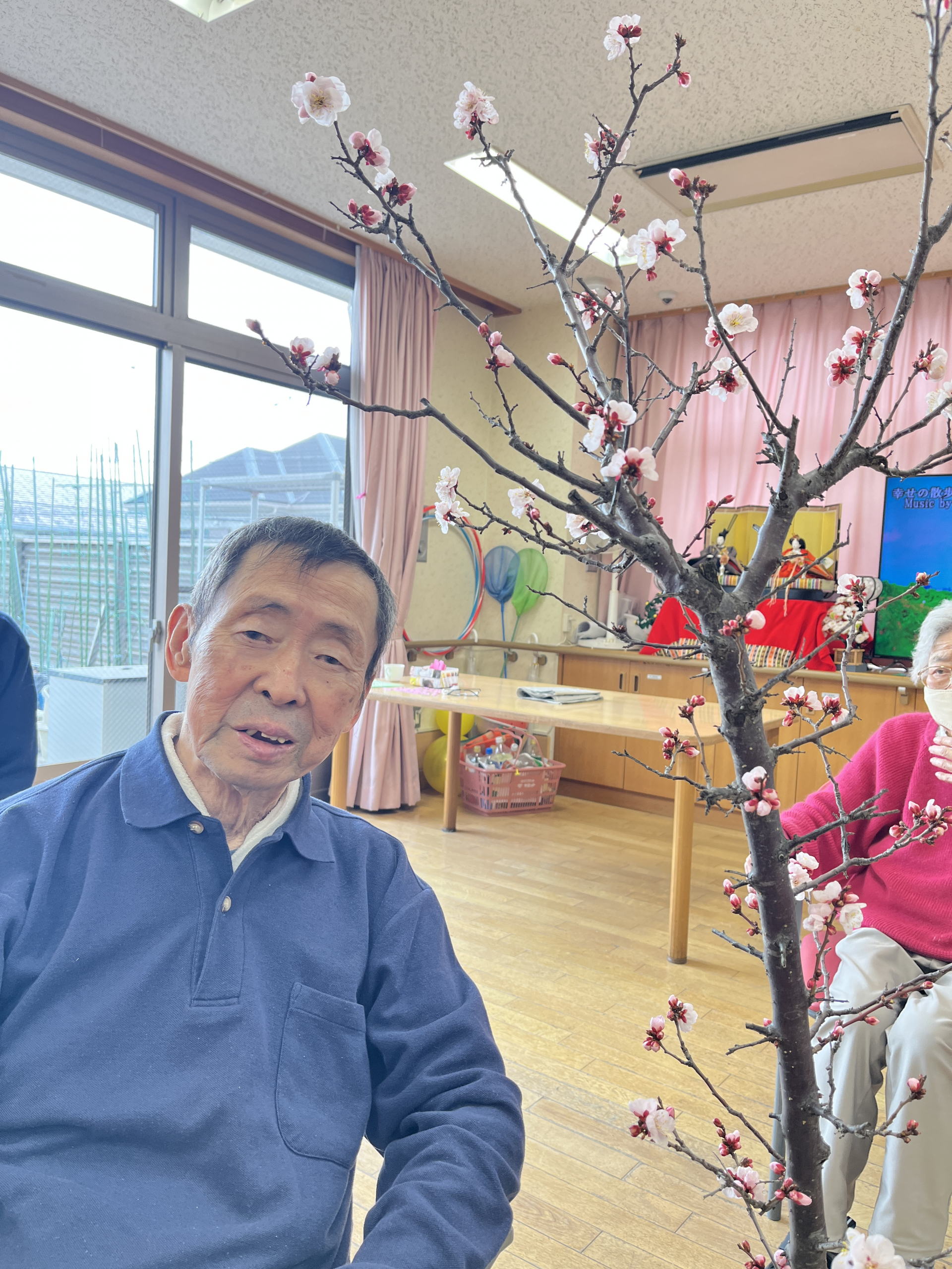 本日、午後のプログラムの時、利用者様は一人ずつで梅の花と記念写真を撮りました。!