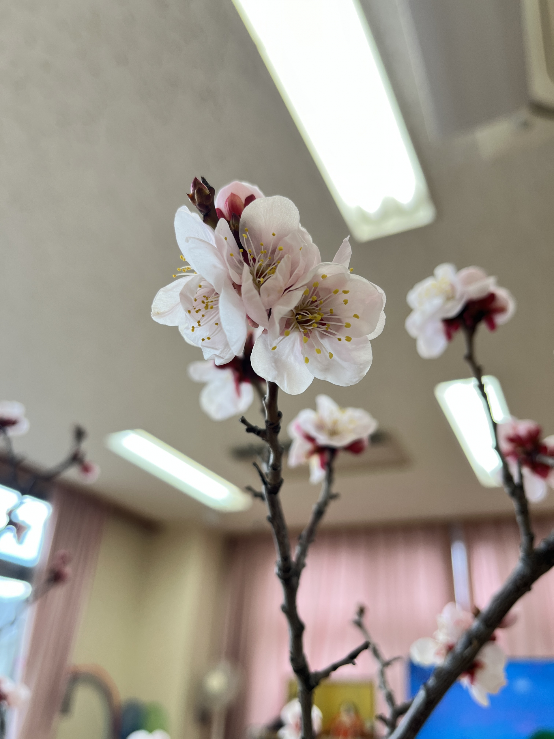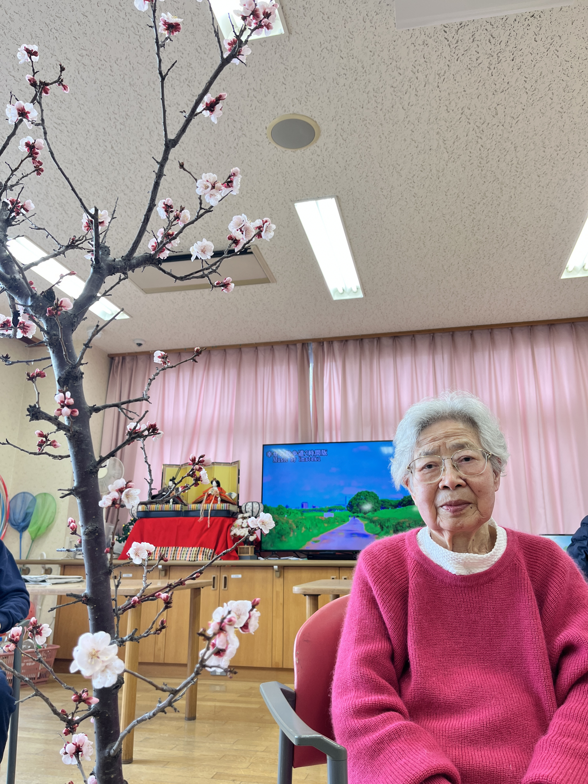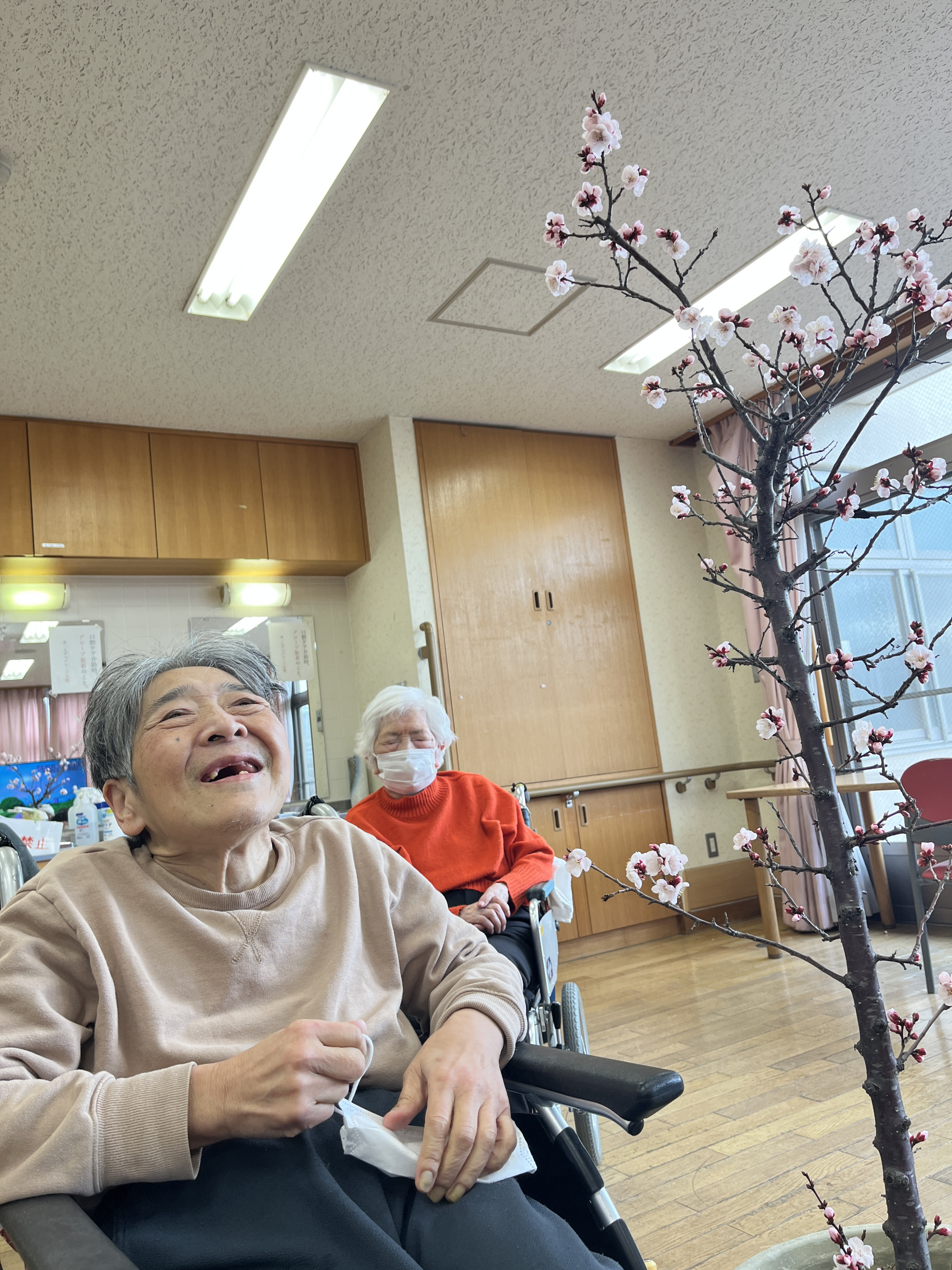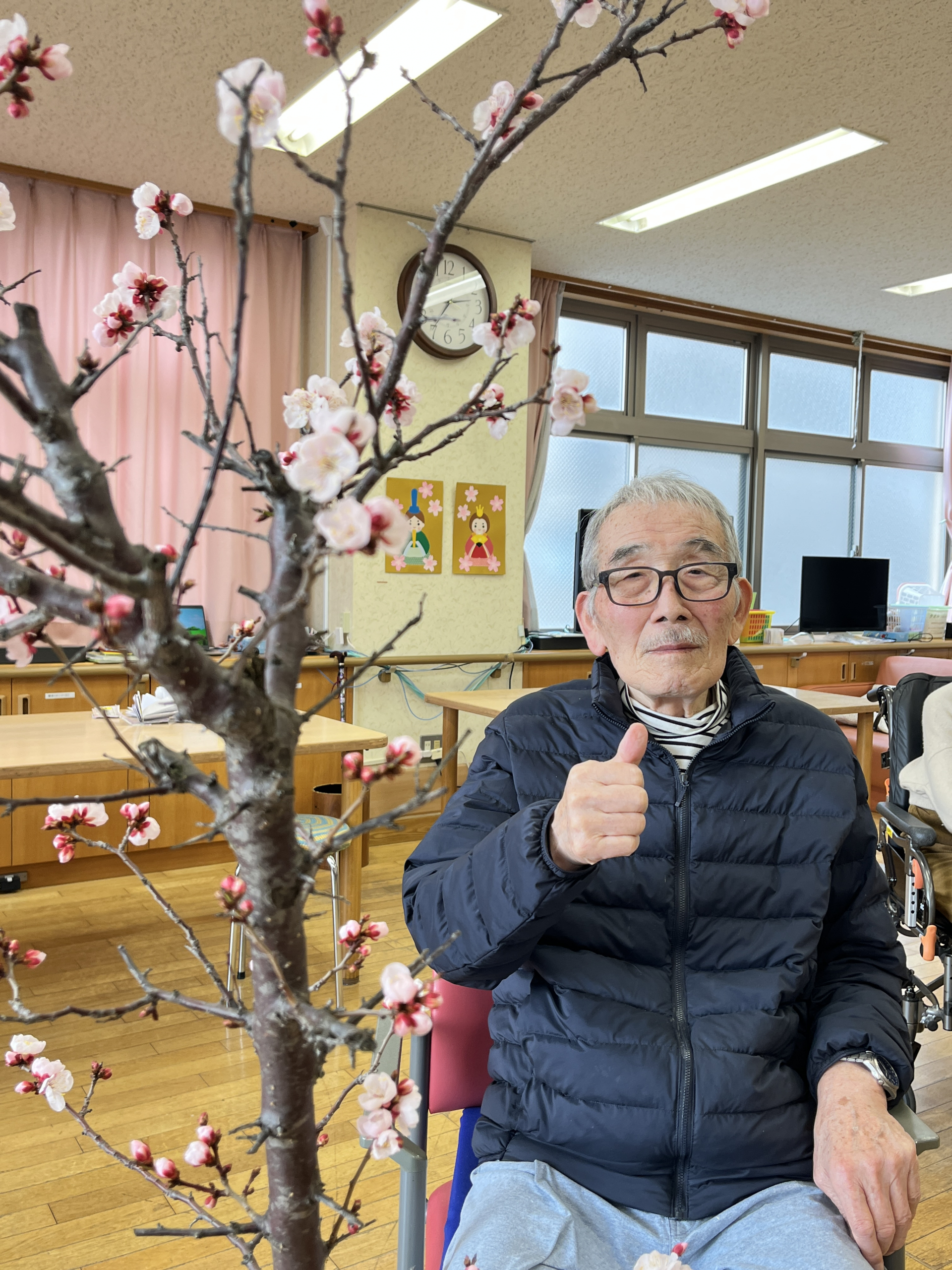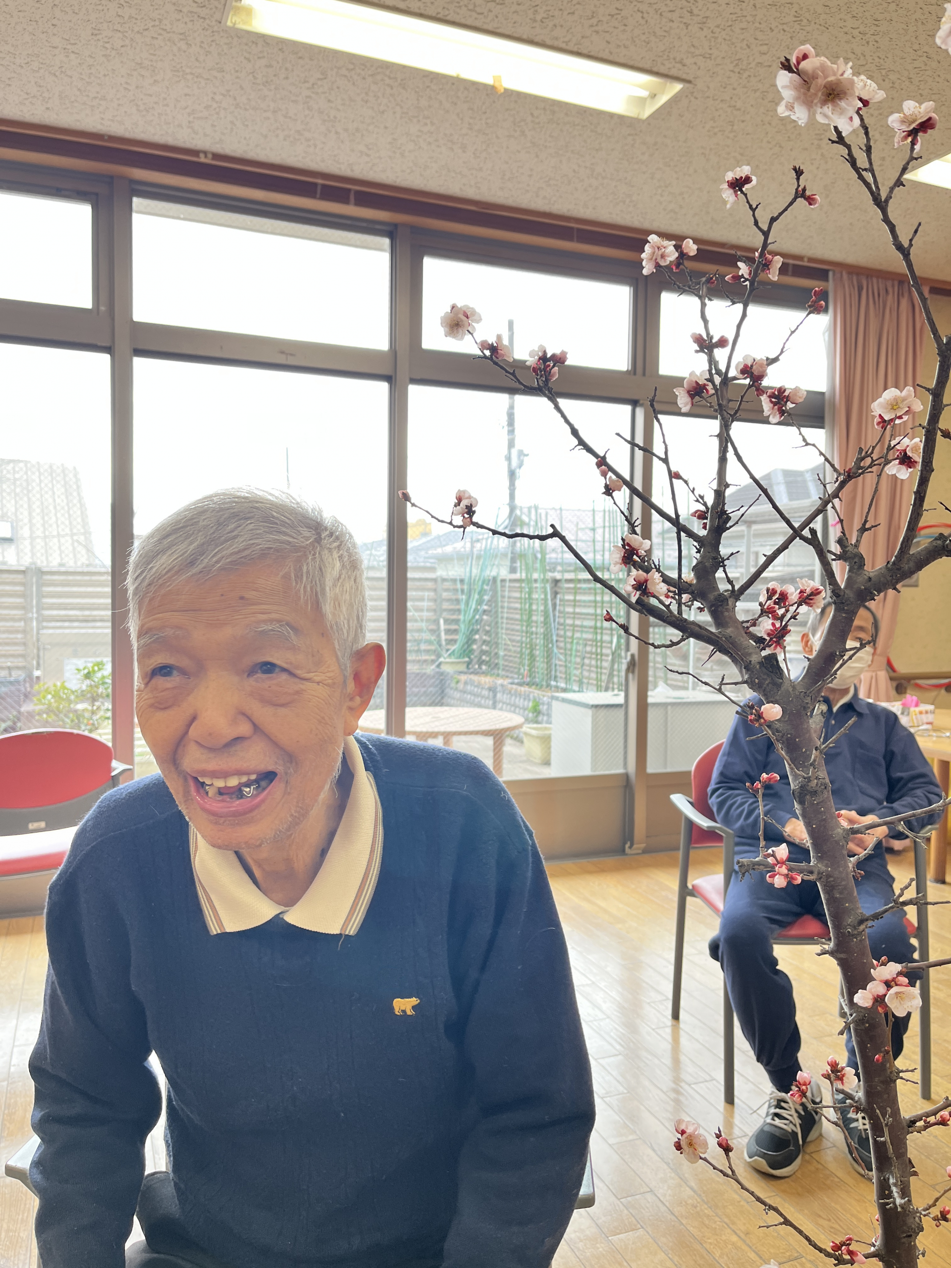 本日、午後のプログラムの時、利用者様は一人ずつで梅の花と記念写真を撮りました。!
