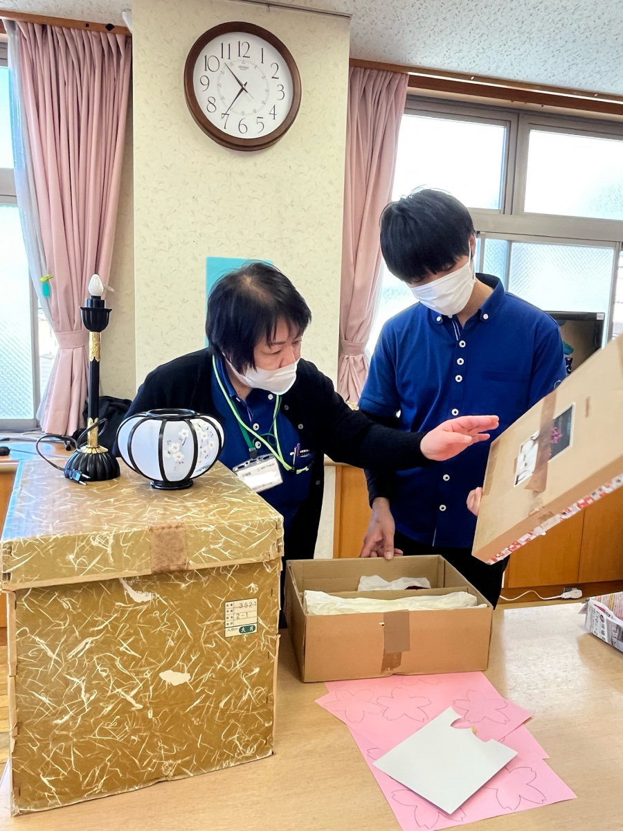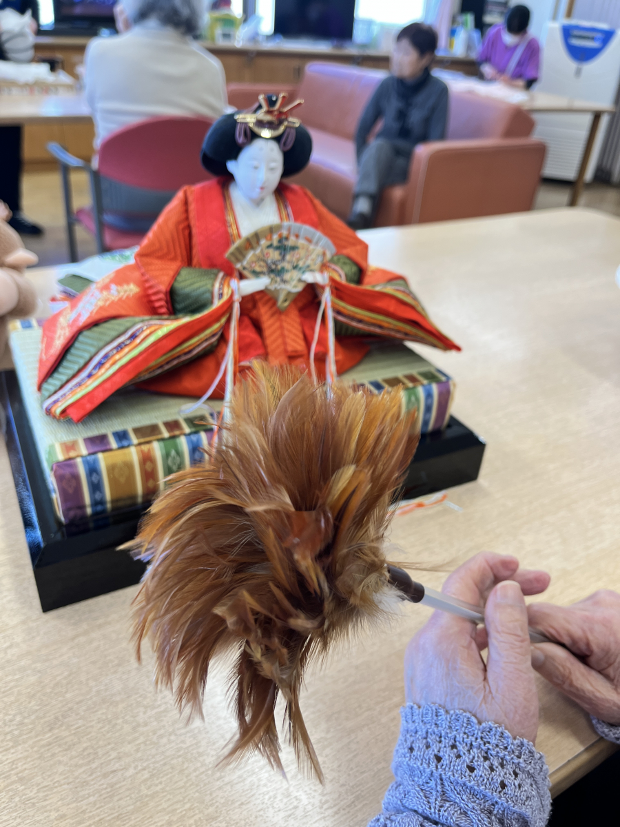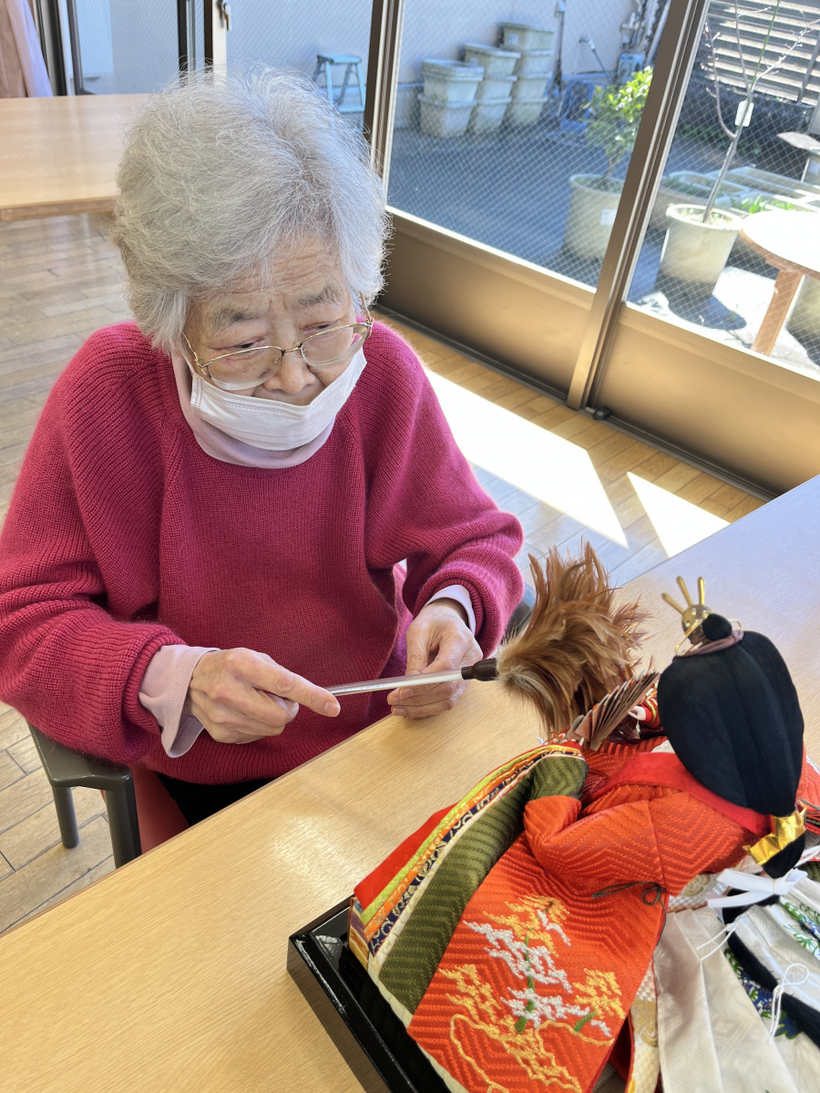 昨日、楽しくおひな祭りをお祝いして行いました。記念写真を撮って、特別にお菓子を召し上がれました。本日、ひな祭りも終わりですから、ご利用者と職員はひな人形を一緒に片付けて頂きました!