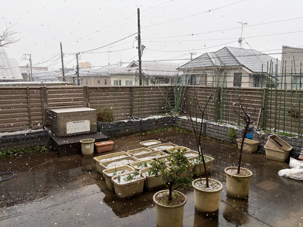 認知デイのバルコニーも、薄っすらと雪が積もり始めています。