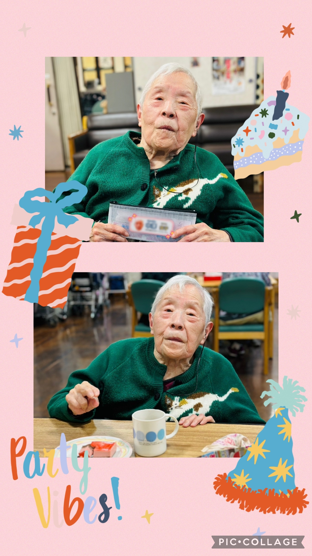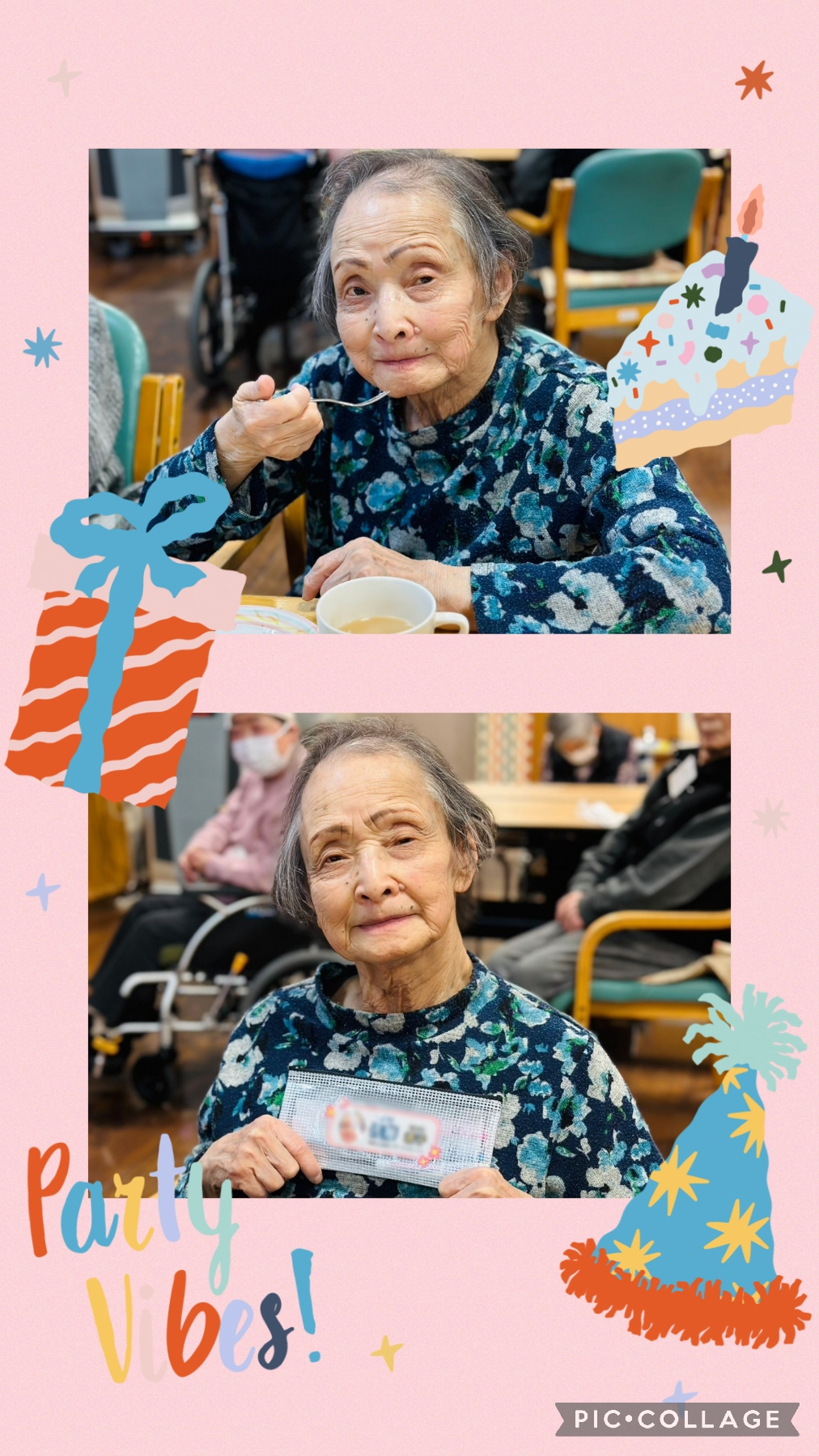 皆様から誕生日の歌を、職員から写真入りの歯ブラシセットを贈らせて頂くと、