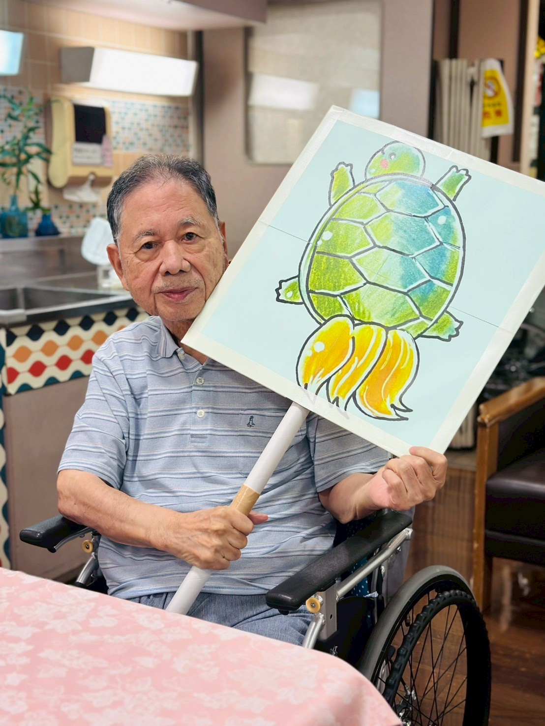 今回は敬老会の続きの記事で、職員手作りの鶴亀パネルと