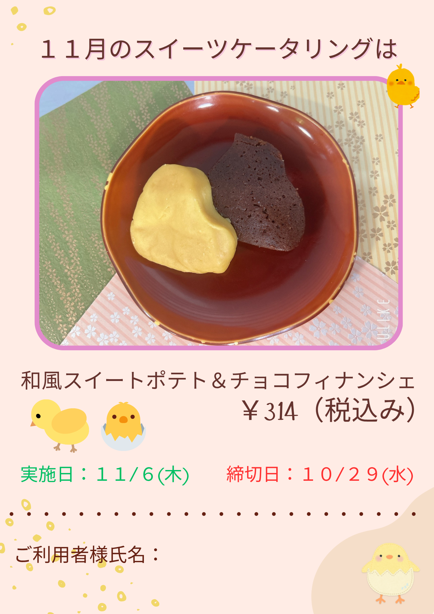 【仲町在セン】11月スイーツケータリングのお知らせ☆
