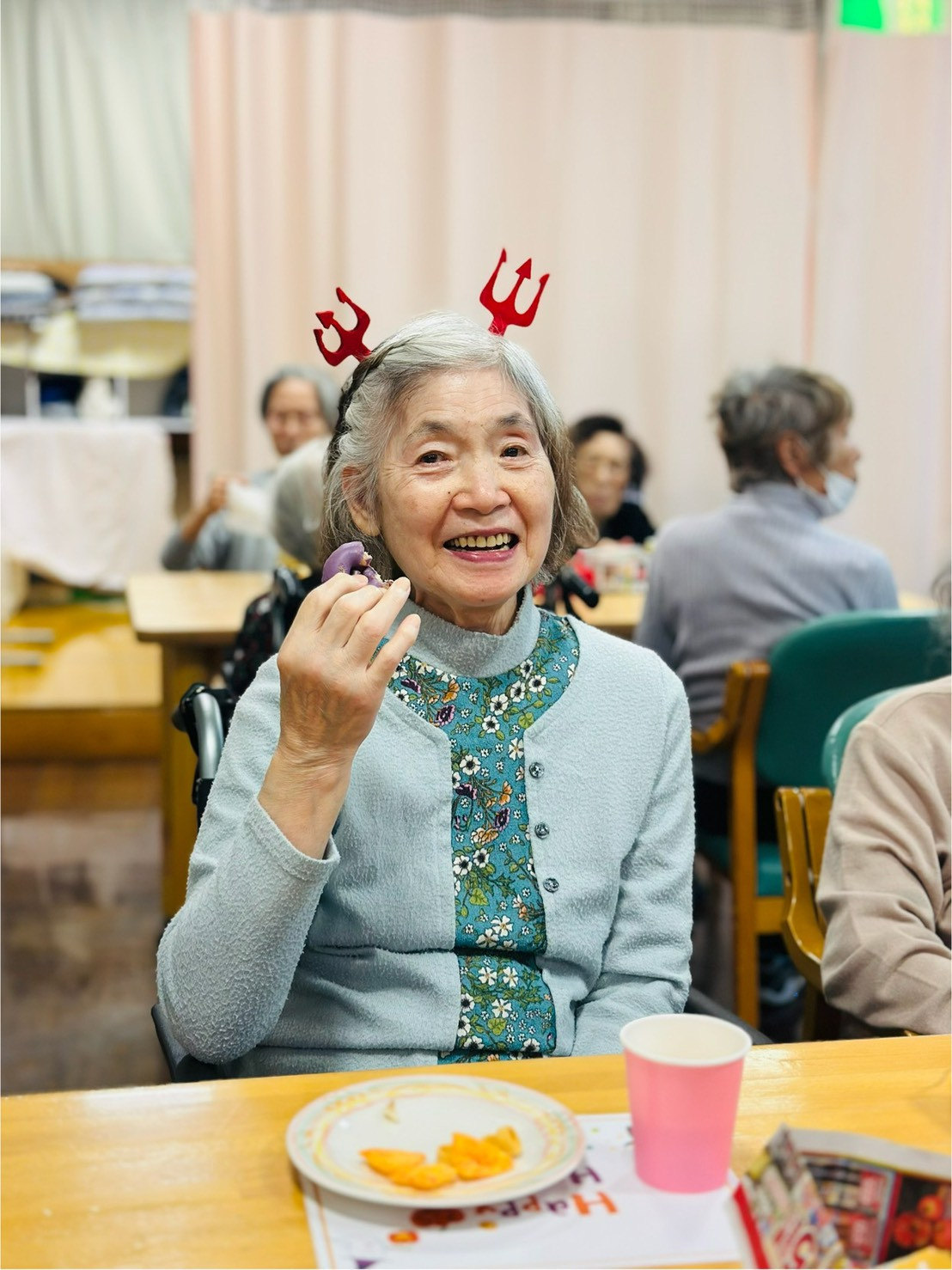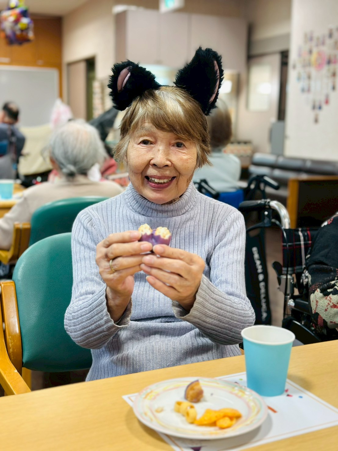 配られたお菓子を前にした皆さんの笑顔が楽しいです♪