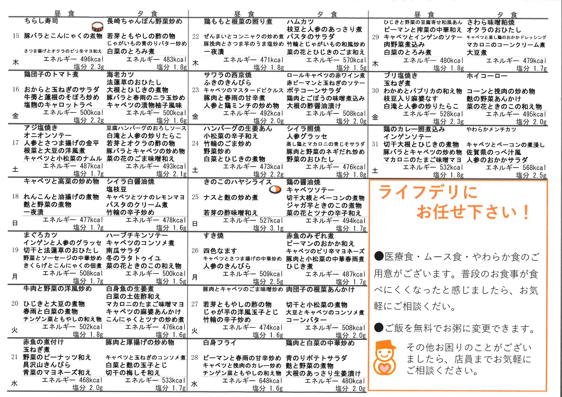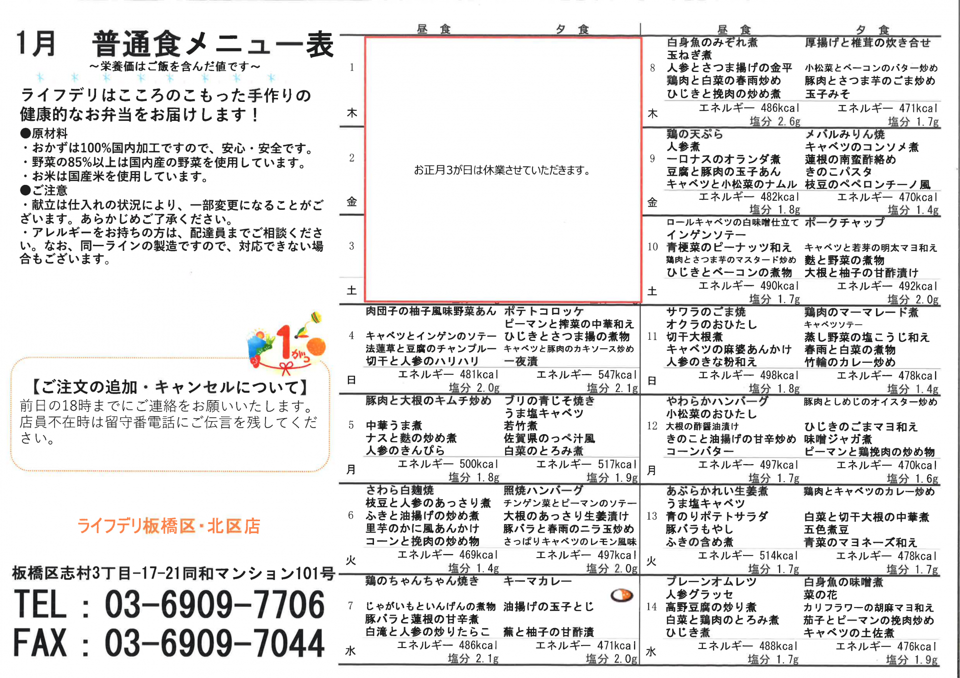 【仲町在セン】1月の献立表です☆