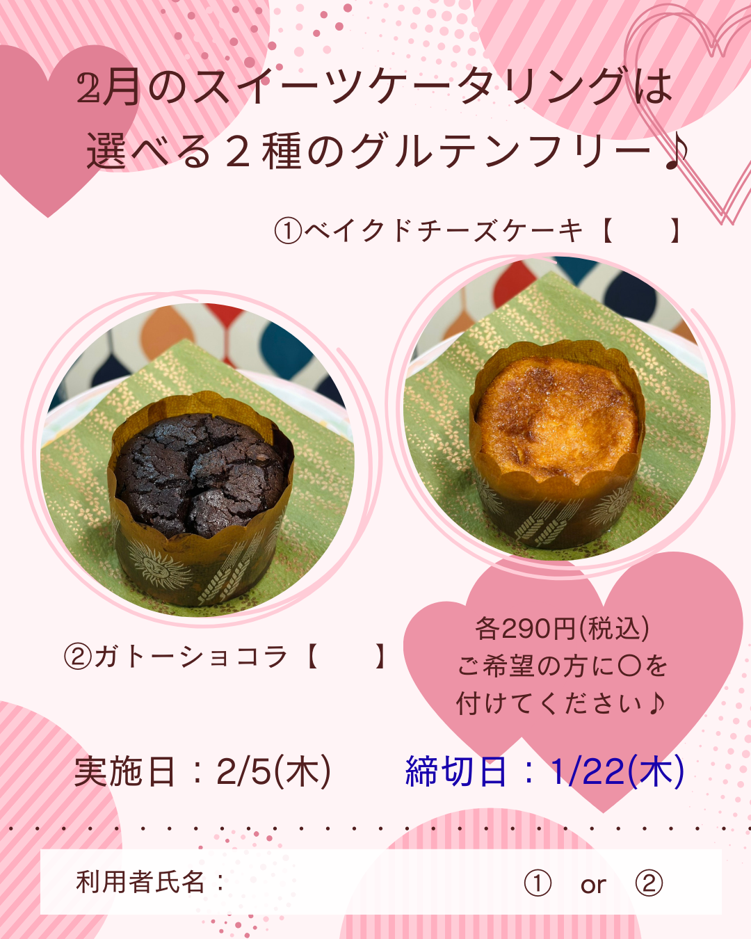 【仲町在セン】2月スイーツケータリングのお知らせです☆