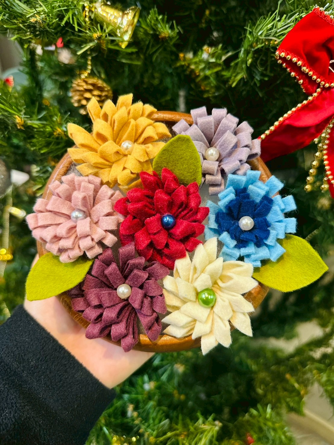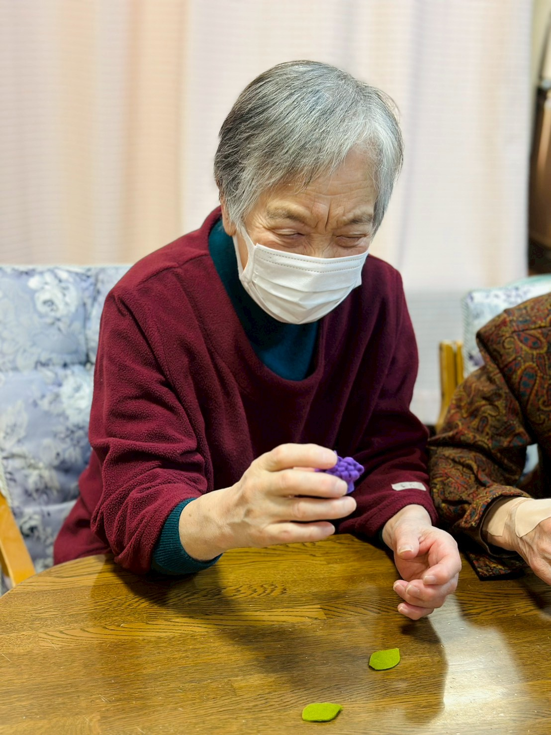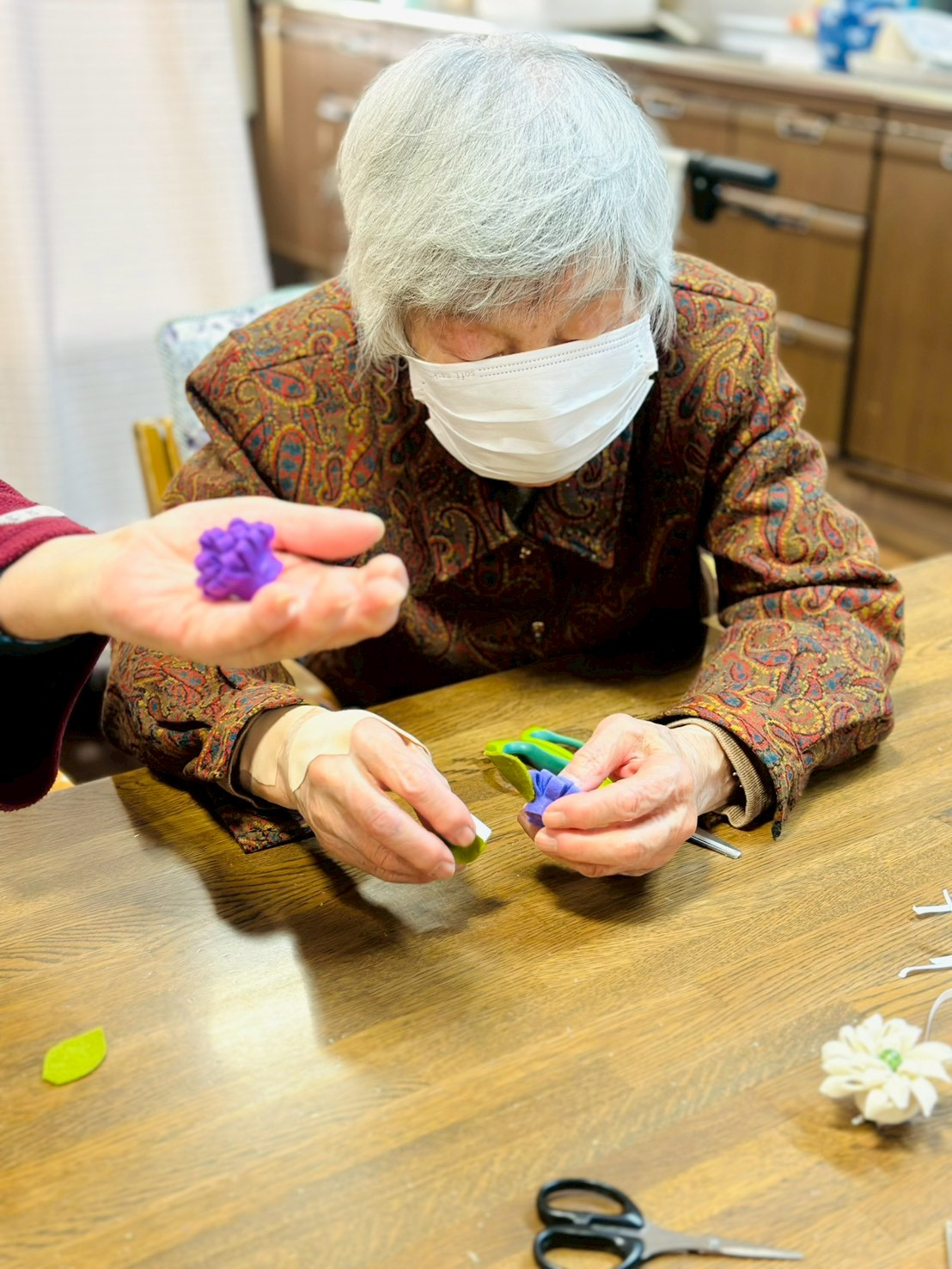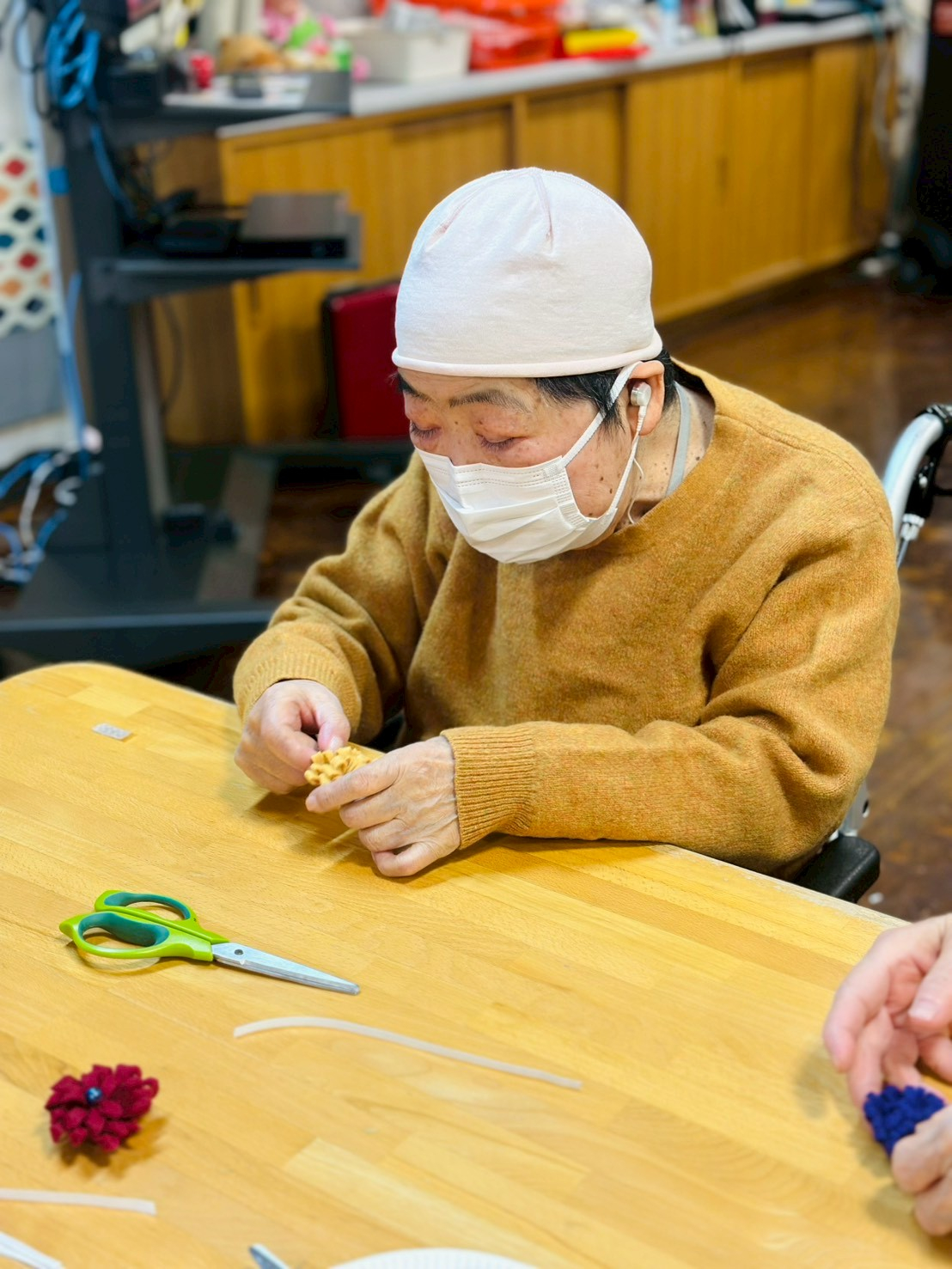 本日は1月の手工芸(フエルトコサージュ作り♪)のお写真です♪