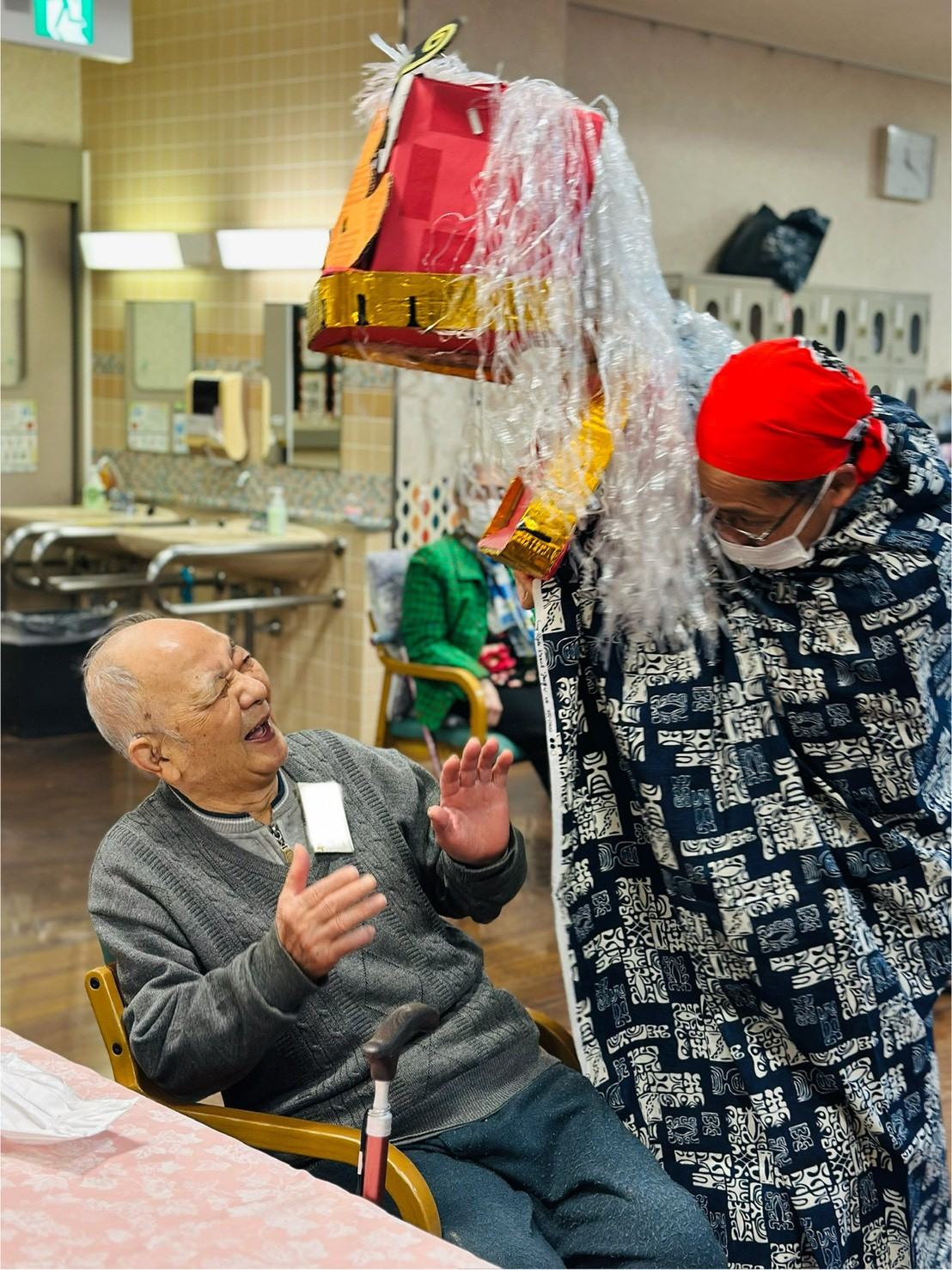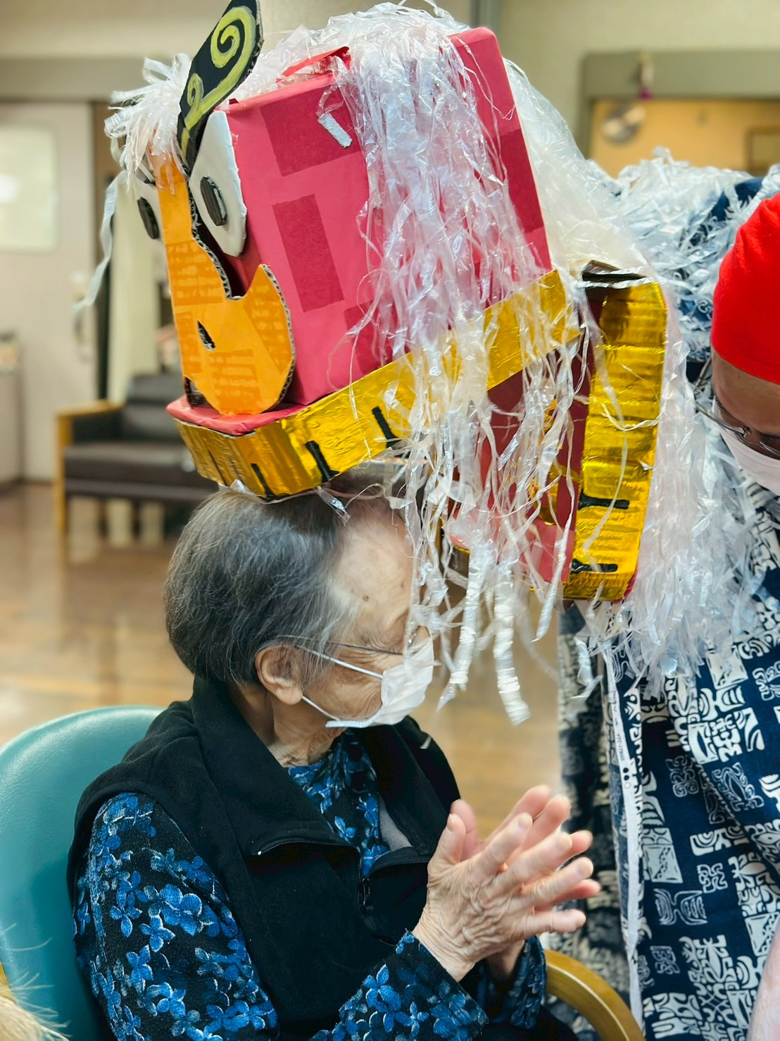 獅子舞の登場、かぶりつきで皆様、慶び、大笑いで、大変楽しい時間でございました。