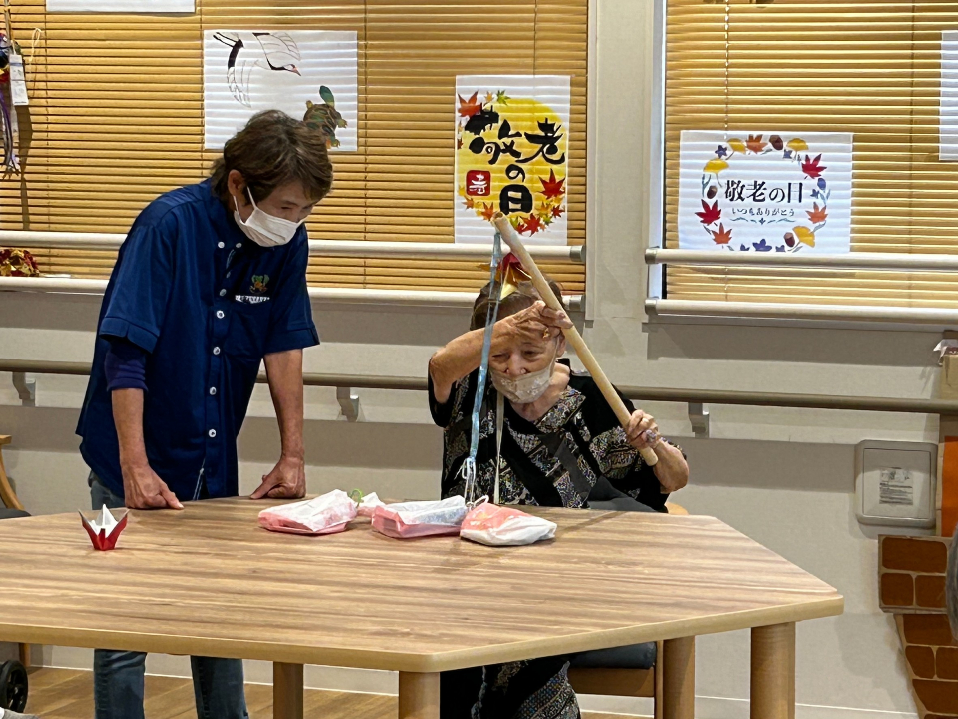 本日、敬老の日に感謝の気持ちを込めて「祝・敬老会」が開催されました。まず特別ランチを召し上がって頂いた後、敬老会が始まりました。