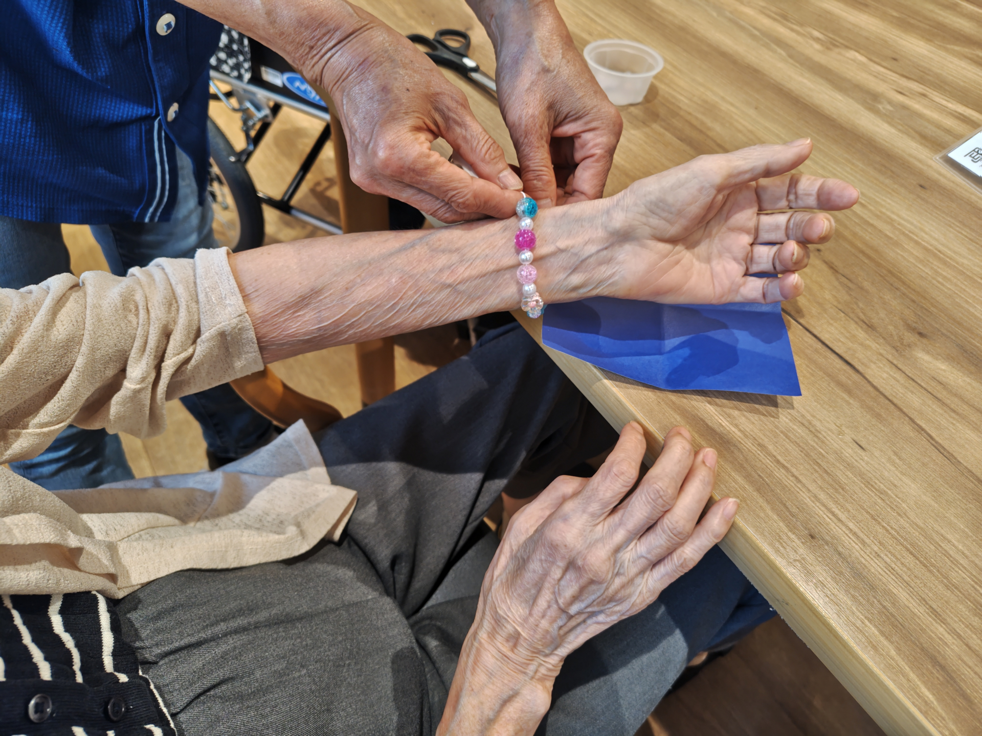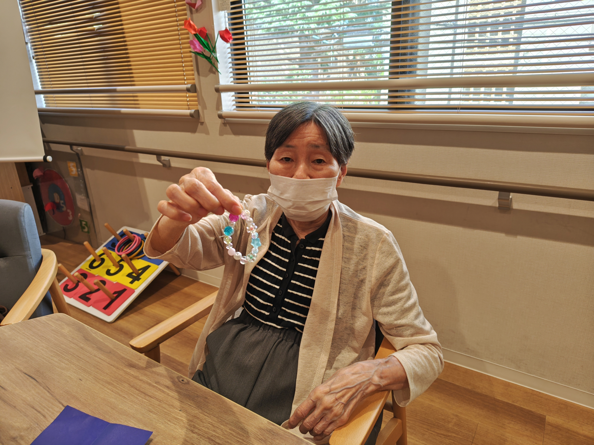 2024.09.11 活動報告 【中野デイ】ビーズ ブレスレット/手工芸 Tweet シェアする 本日の手工芸はビーズブレスレット作りでした。 皆様ビーズに糸を通すのが大変だったようで、完成した時は皆様笑顔で手首につけていらっしゃいました。 奉優デイサービス中野 前の記事 2024.09.12 活動報告 【中野デイ】プロのアーティストのコラボ演奏会♪ 次の記事 2024.09.10 活動報告 【中野デイ】大相撲春場所 一覧へ戻る