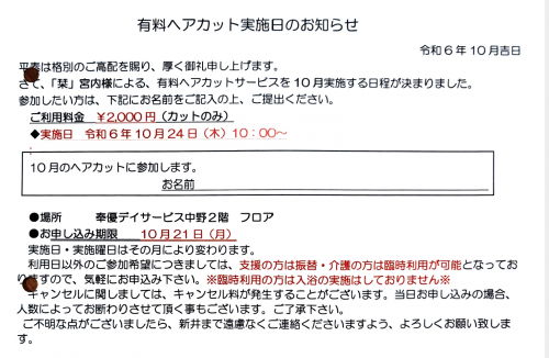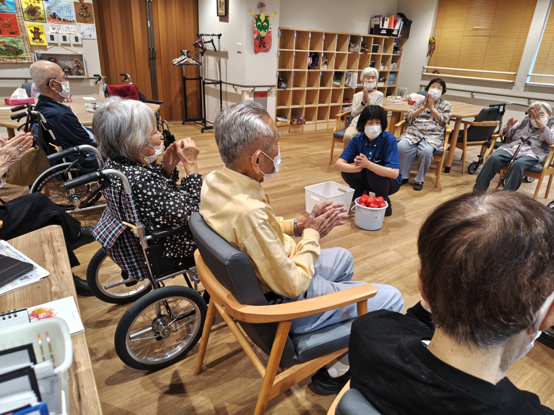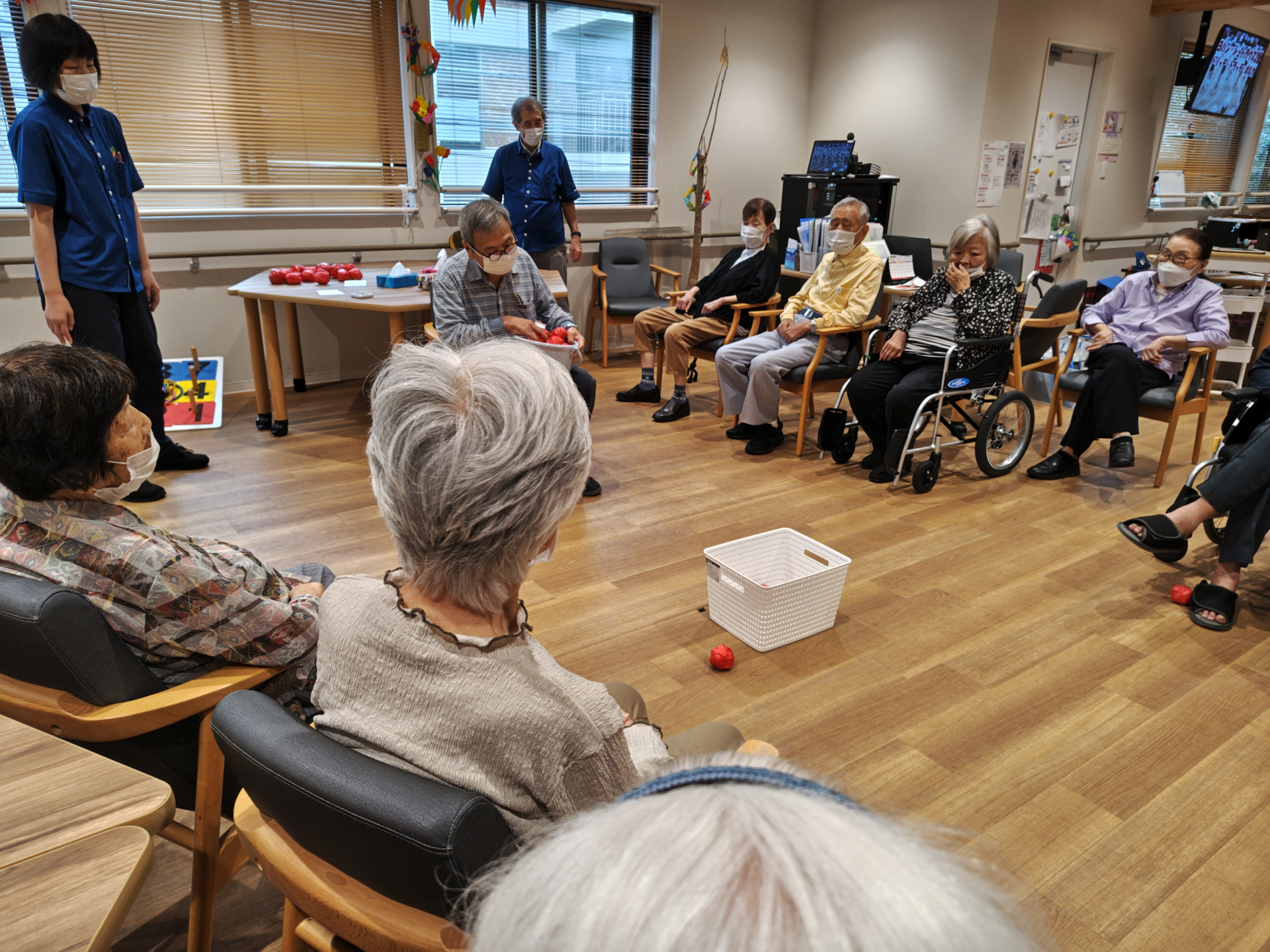 2024.10.02 活動報告 【中野デイ】玉入れゲーム Tweet シェアする 本日の上肢筋力トレーニングは「玉入れゲーム」。10月の中旬に行われる秋の運動会の予行練習!? 単純なゲームですが、なぜか大熱狂に。皆さま負けず嫌いですね(笑) 奉優デイサービス中野 T 前の記事 2024.10.03 活動報告 【中野デイ】運動会のお知らせ! 次の記事 2024.10.01 活動報告 【中野デイ】ヘアカットのおしらせ 一覧へ戻る
