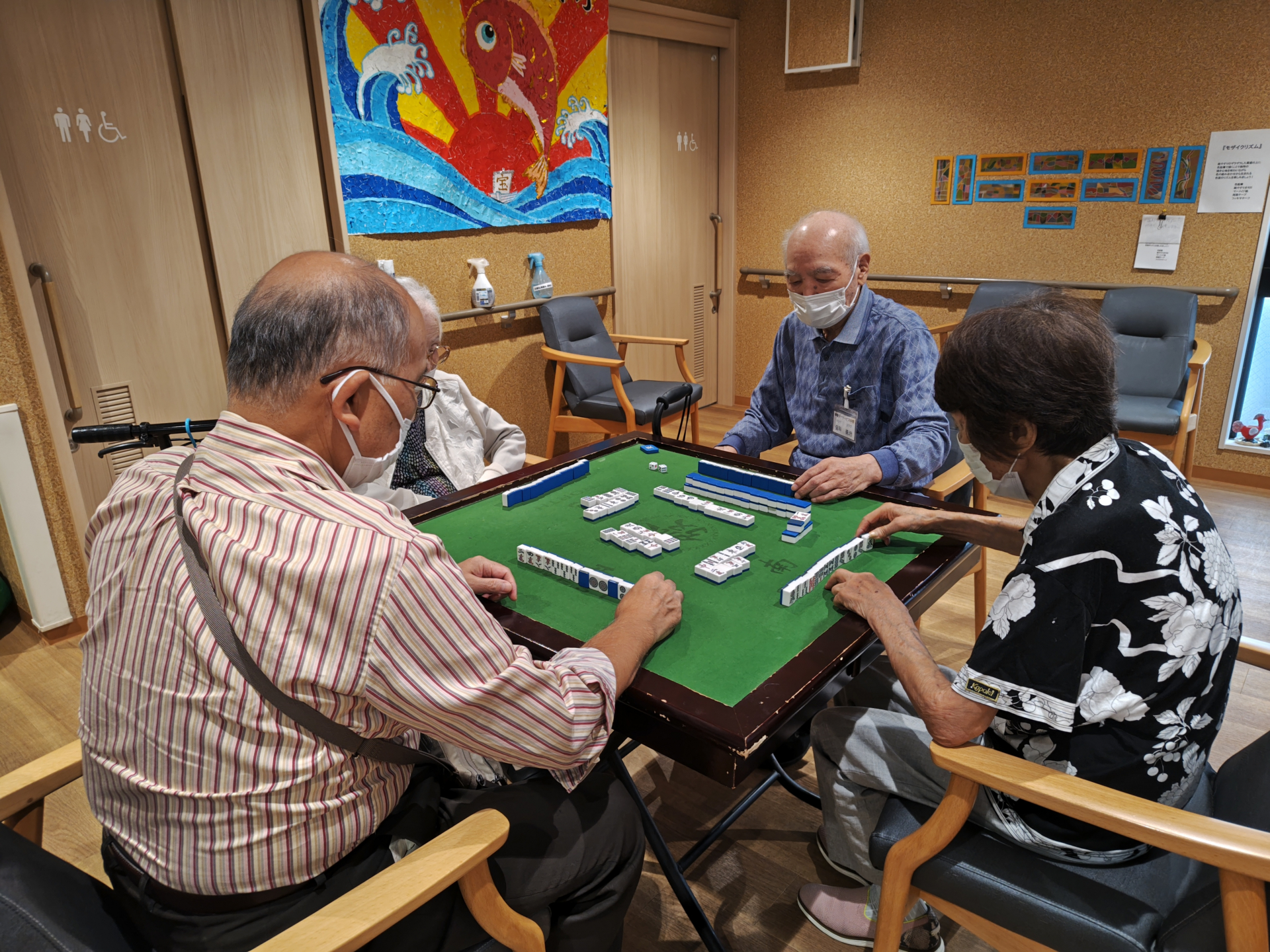 最近男性利用者も楽しめる麻雀に加えて囲碁倶楽部も復活しました。中々囲碁が出来る人がいなかったのですが、職員に加えて1Fの敬老館の利用者様もボランティアとして2Fのデイルームに参加いただける事になりました。