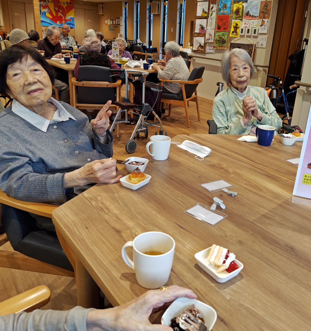 本日のレクの後のおやつはケーキバイキングを実施しました。 職員の下準備も終わりもうすぐ始まります。