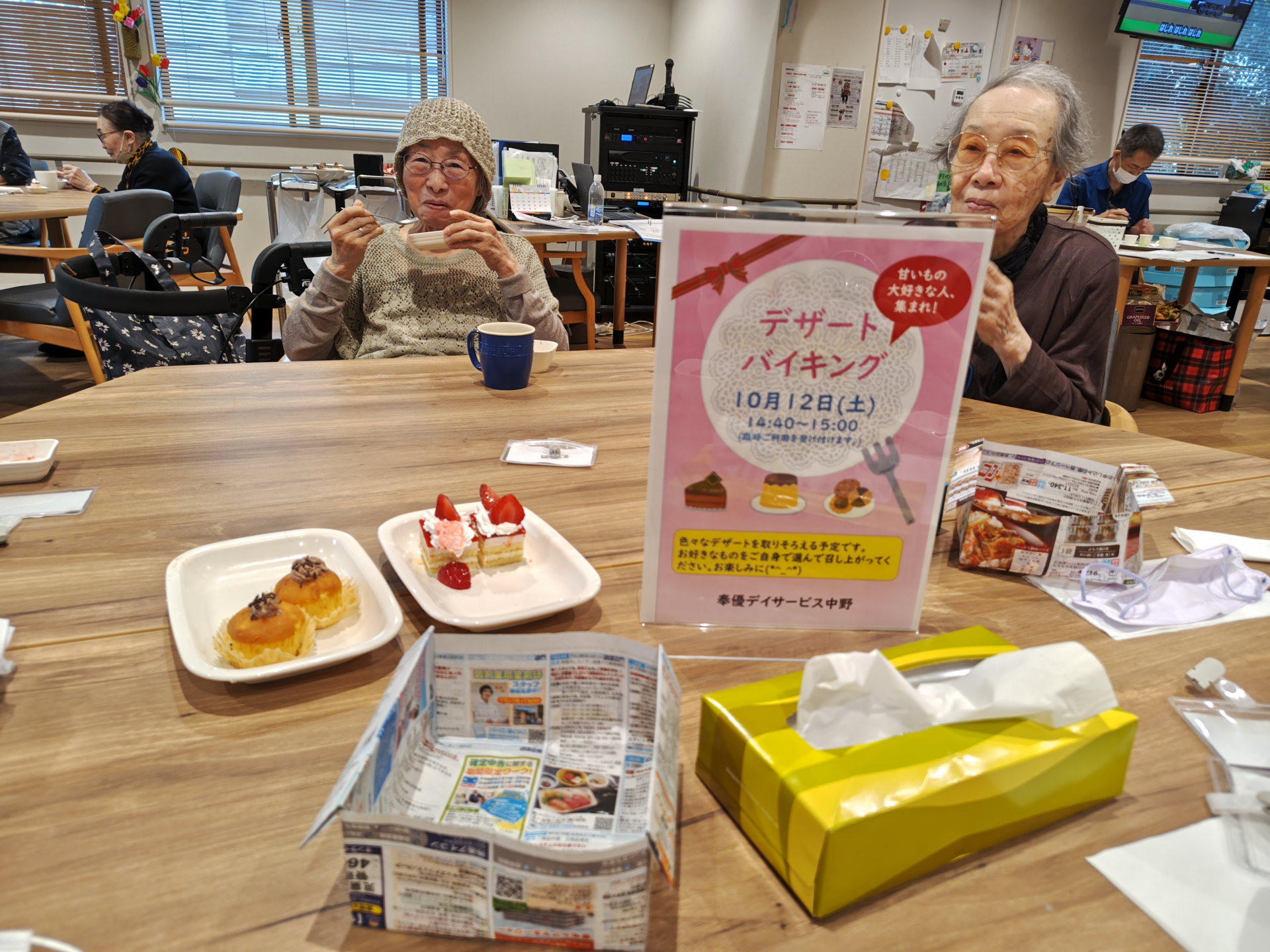 本日のレクの後のおやつはケーキバイキングを実施しました。 職員の下準備も終わりもうすぐ始まります。