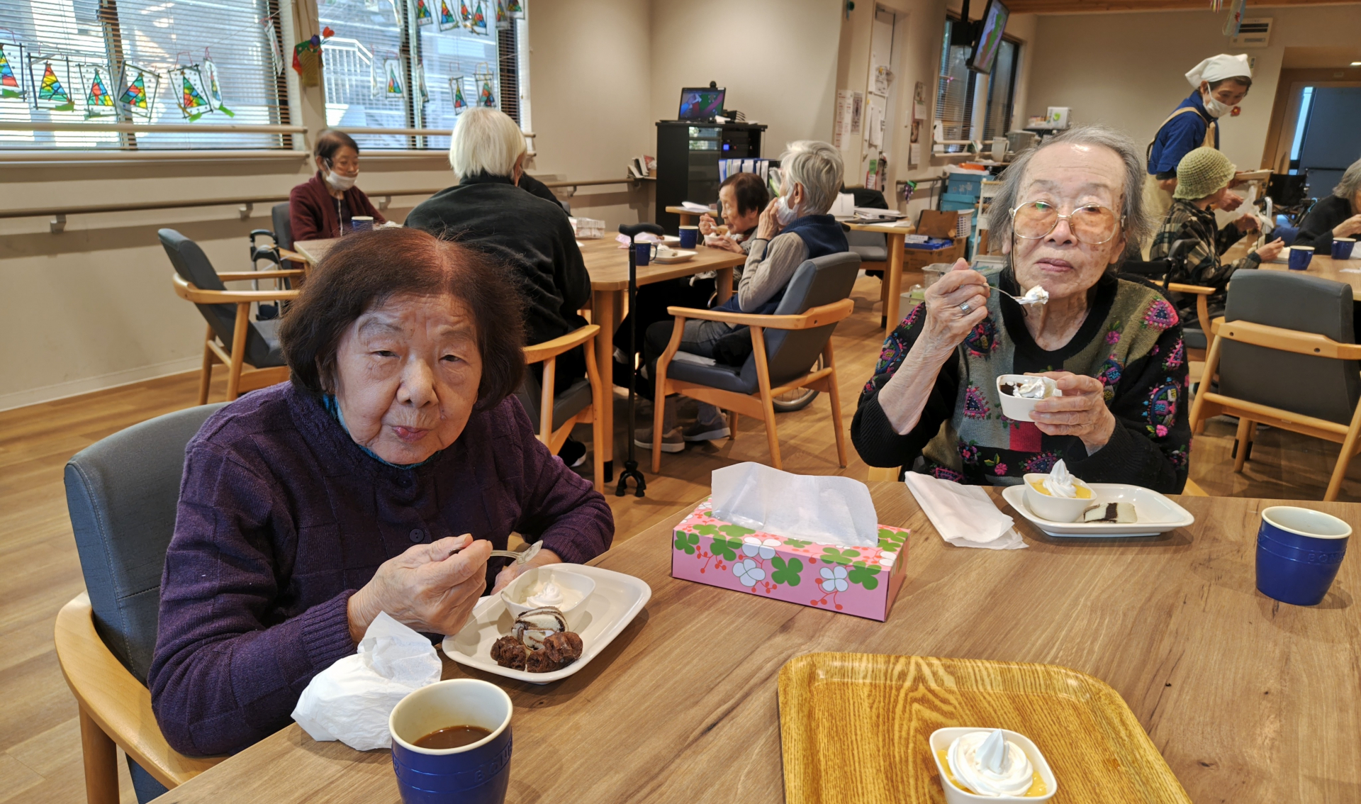 11月最後のイベントはデザートバイキングを実施しました。 昼食はあまり召し上がられない人もデザートには目がないようで大人気企画です。 準備もOKです。