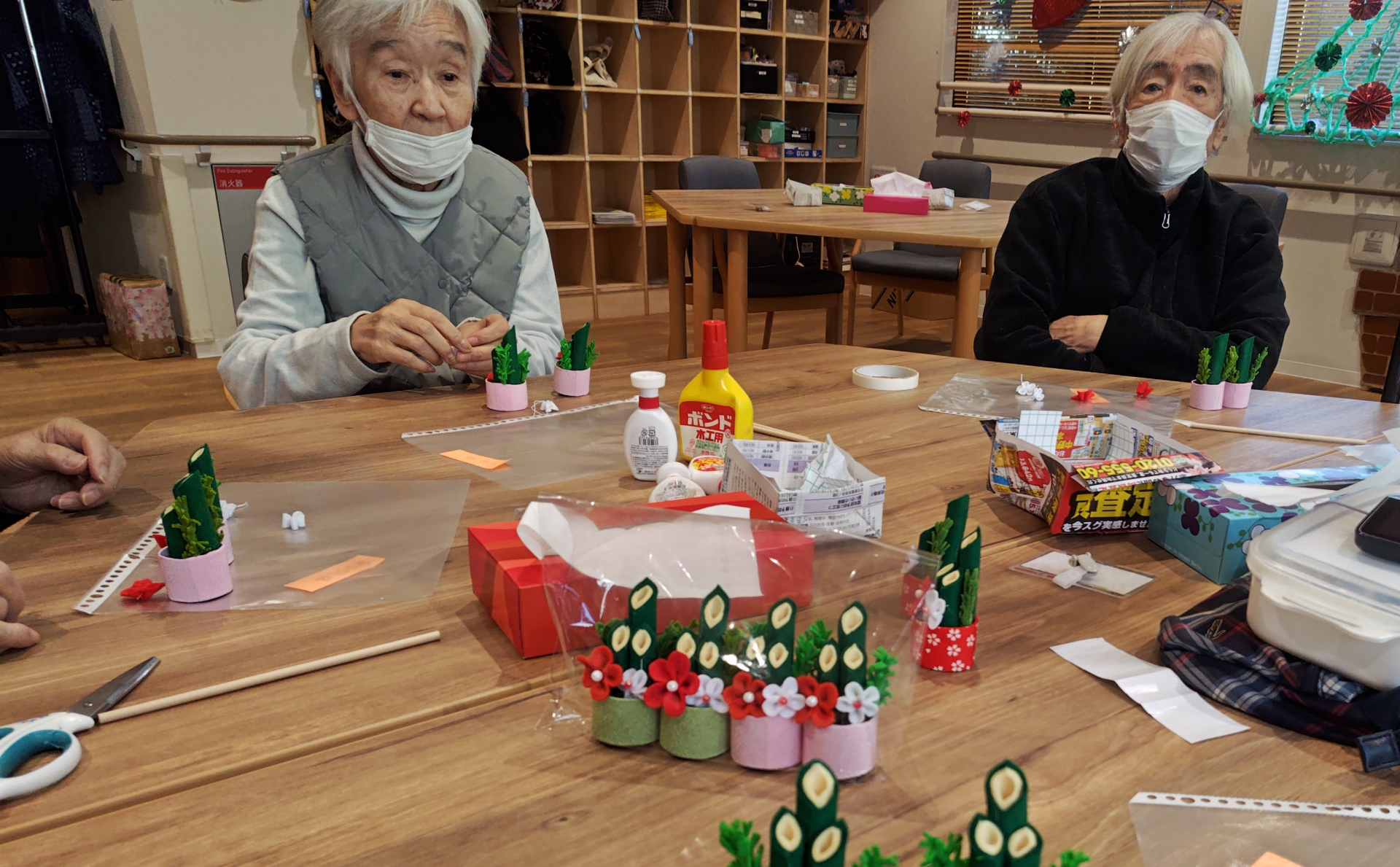 2024.12.18 活動報告 【中野デイ】門松作り Tweet シェアする 本日も先週に引き続き、門松作りの仕上げが行われました。 完成品↓↓↓ M様は完成品を持ち上げ満足なご様子でした。 奉優デイサービス中野 T 前の記事 2024.12.20 活動報告 【中野デイ】イケメンブラザース♪ 次の記事 2024.12.16 活動報告 【中野デイ】フェスタ落語会 一覧へ戻る