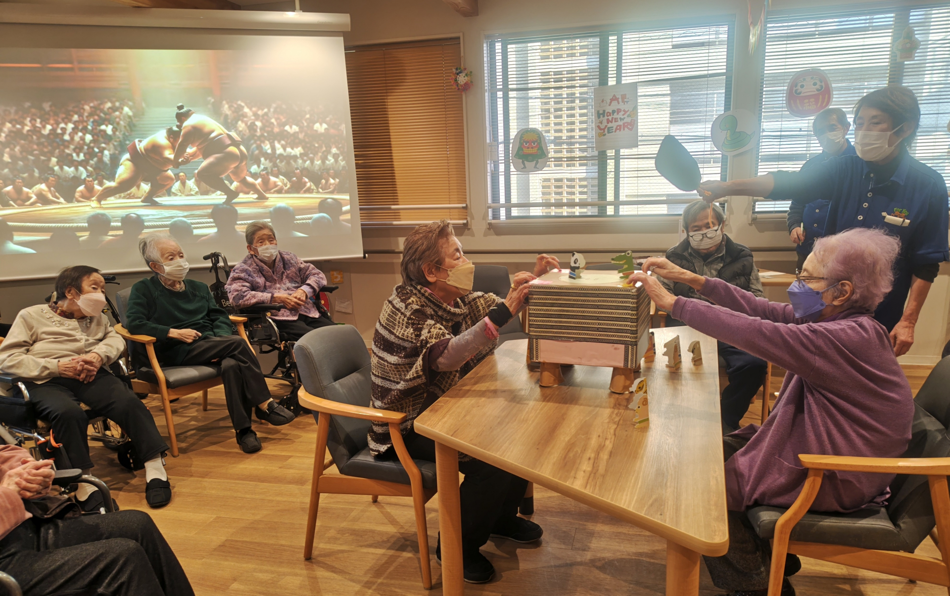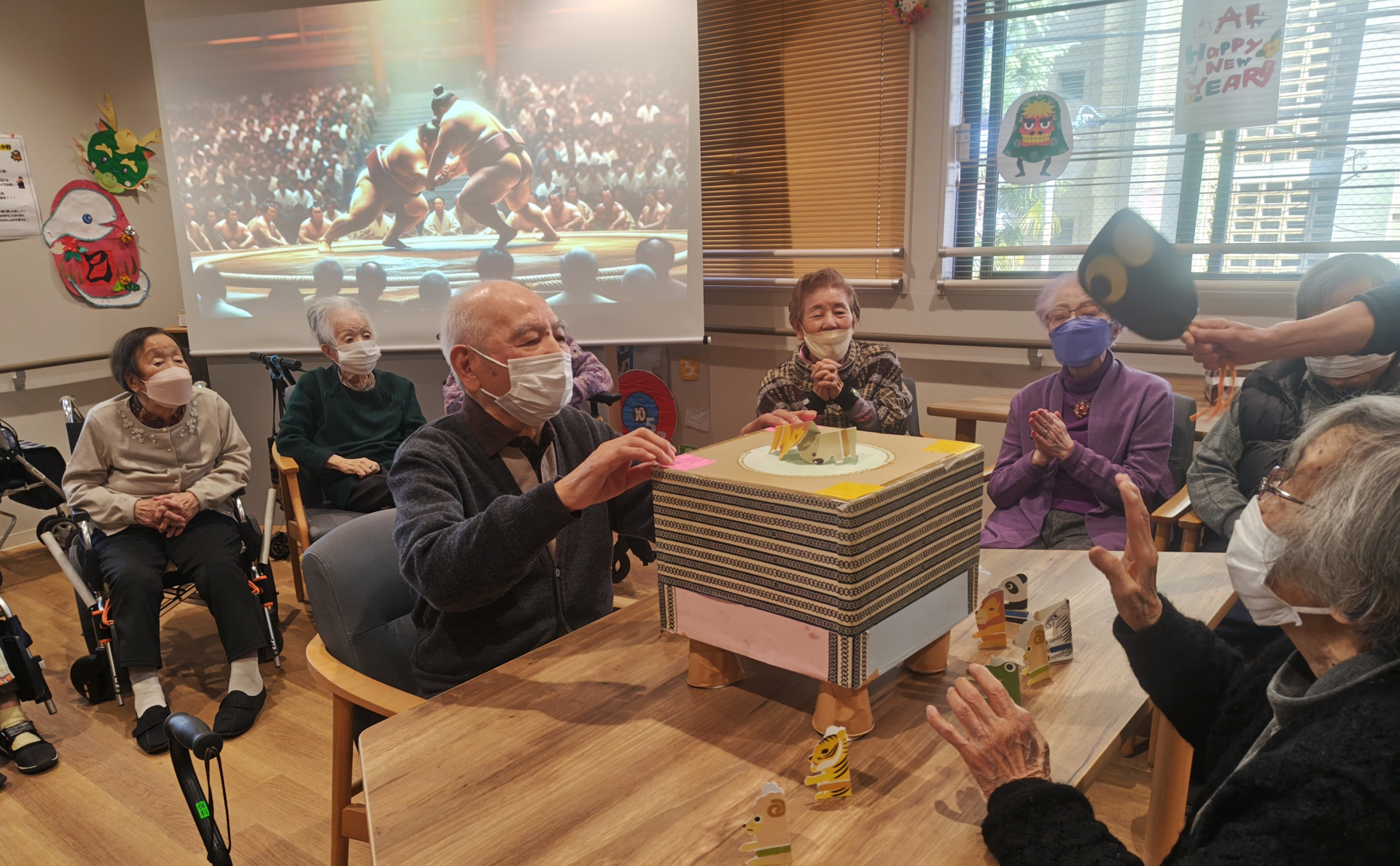 2025.01.07 活動報告 【中野デイ】大相撲 中野場所 Tweet シェアする 本日の上肢筋力向上ゲームは人気のトントン相撲が開催されました。 皆様意外と負けず嫌いで白熱した取り組みが続きました。M様とても悔しそうーーー笑 奉優デイサービス中野 T 前の記事 2025.01.08 活動報告 【中野デイ】ヘアカットのお知らせ! 次の記事 2025.01.06 活動報告 【中野デイ】タイムバスケット! 一覧へ戻る