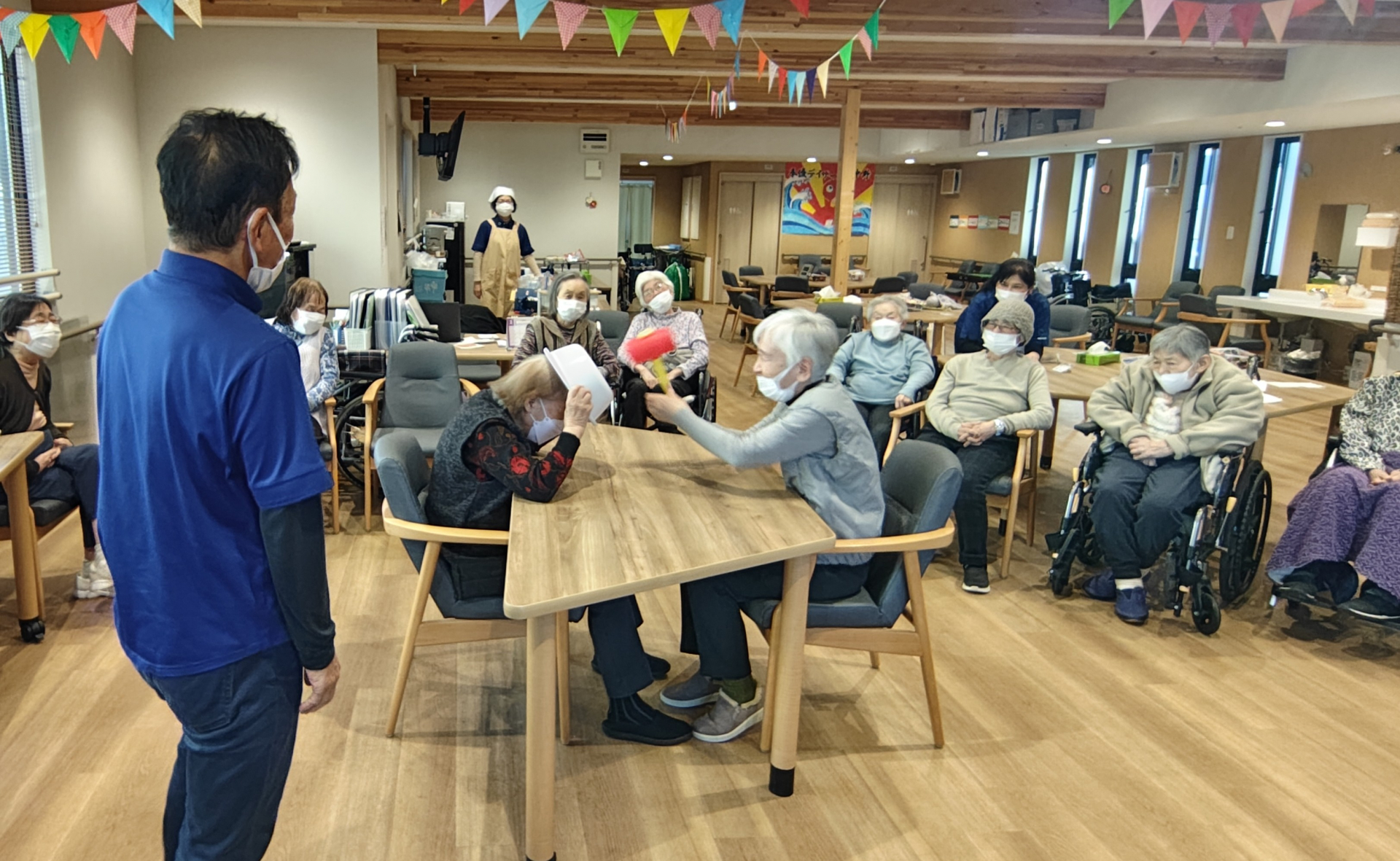 本日のゲームは「叩いて被ってじゃんけんポン!」定番の人気ゲームを行いました。