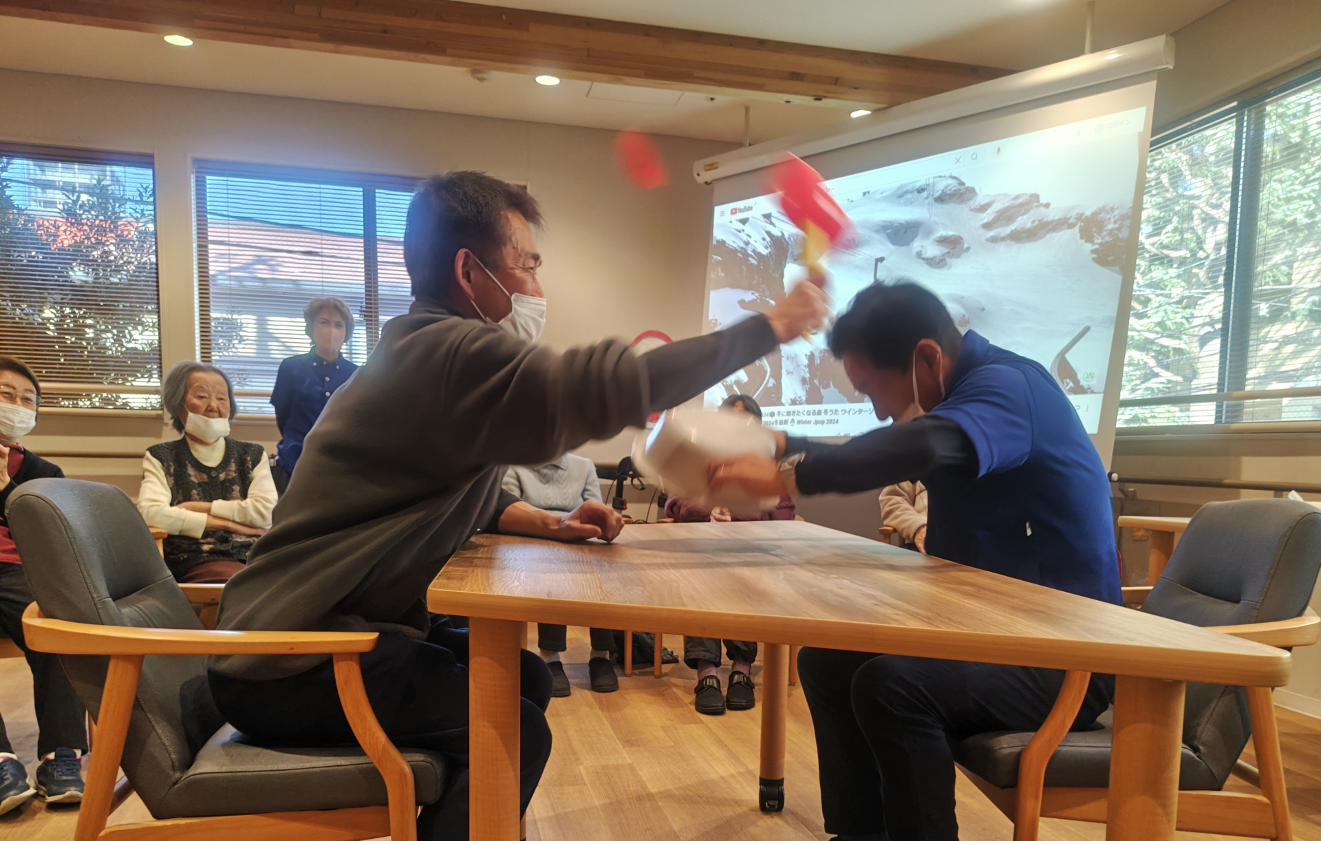 皆さま、負けず嫌いでじゃんけん負けてもハンマーを手に・・・(笑)