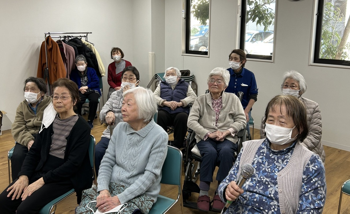 本日は1F敬老館のカラオケサークルのご厚意でデイ希望者が参加して「カラオケ大会」が開催されました。