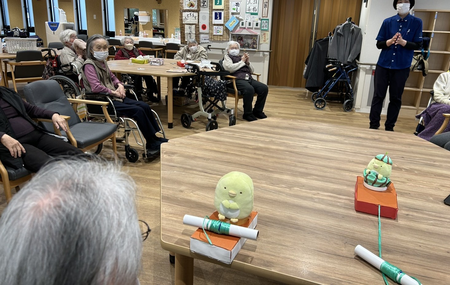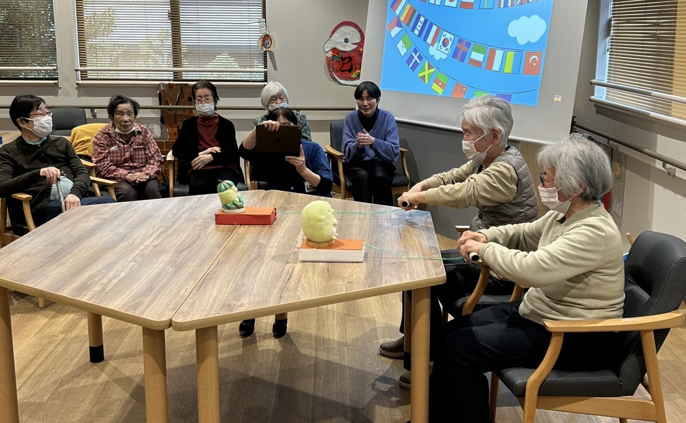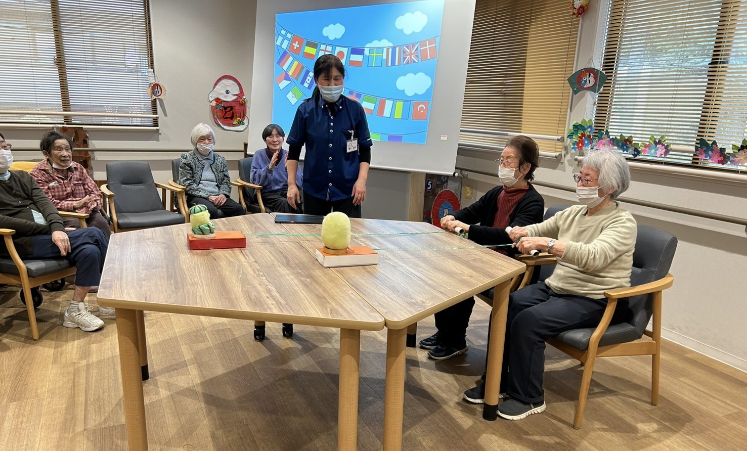本日の上肢筋力向上ゲームは手首を使って物を落とさないで手元に巻き寄せる速さを競うゲームでした。