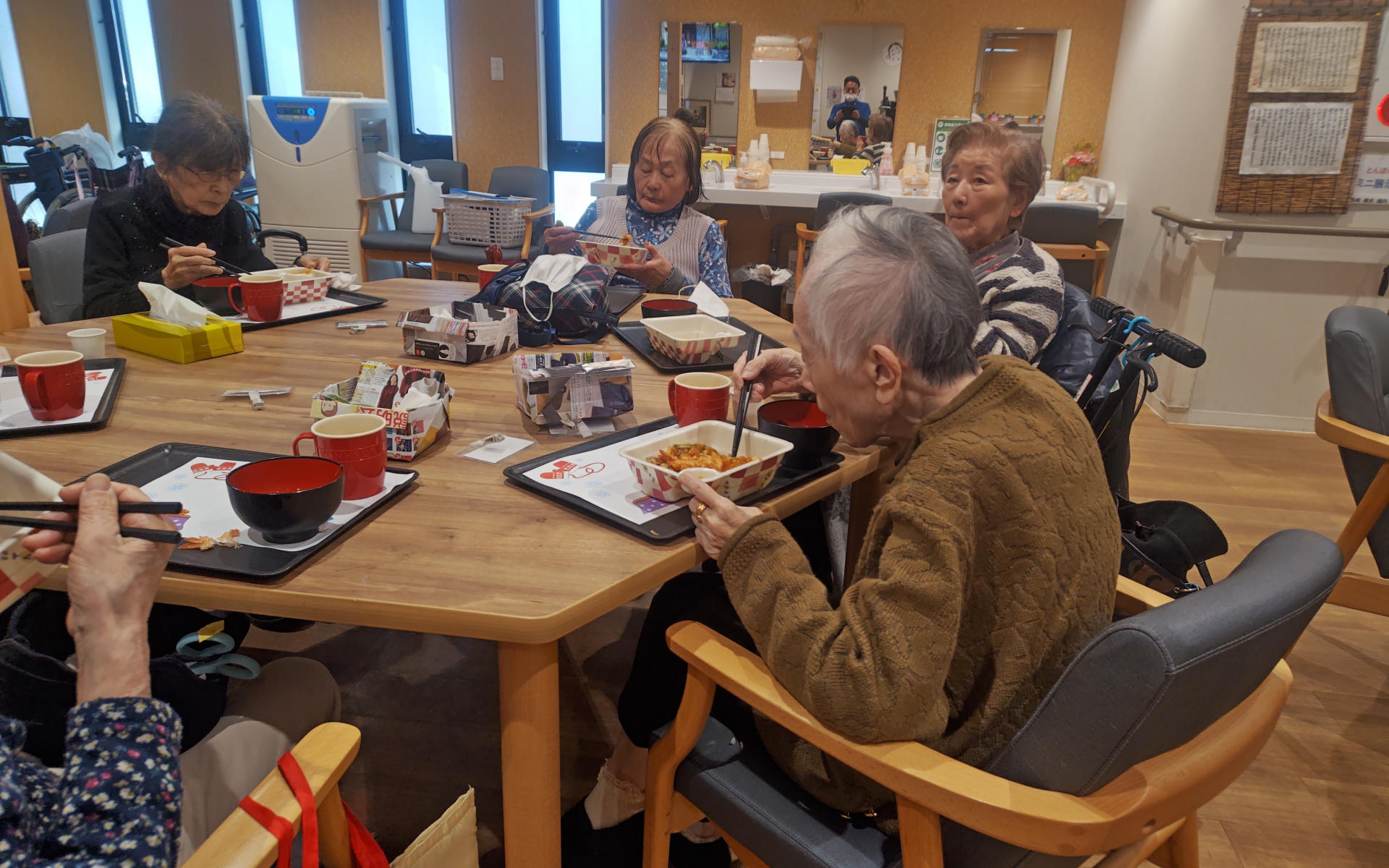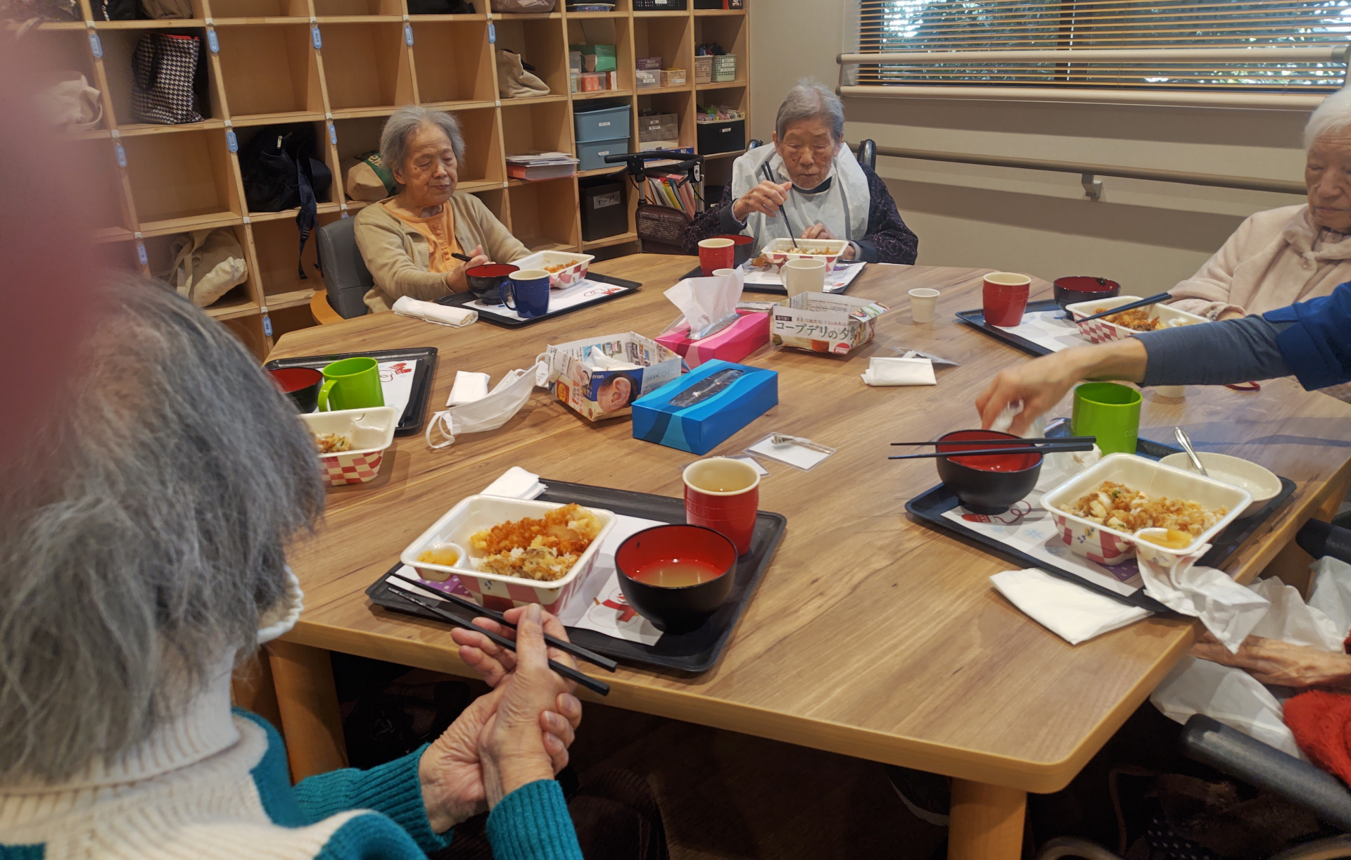 1月デイ最終日はお楽しみイベントが開催されました。まず本日の昼食はてんやの天丼です。