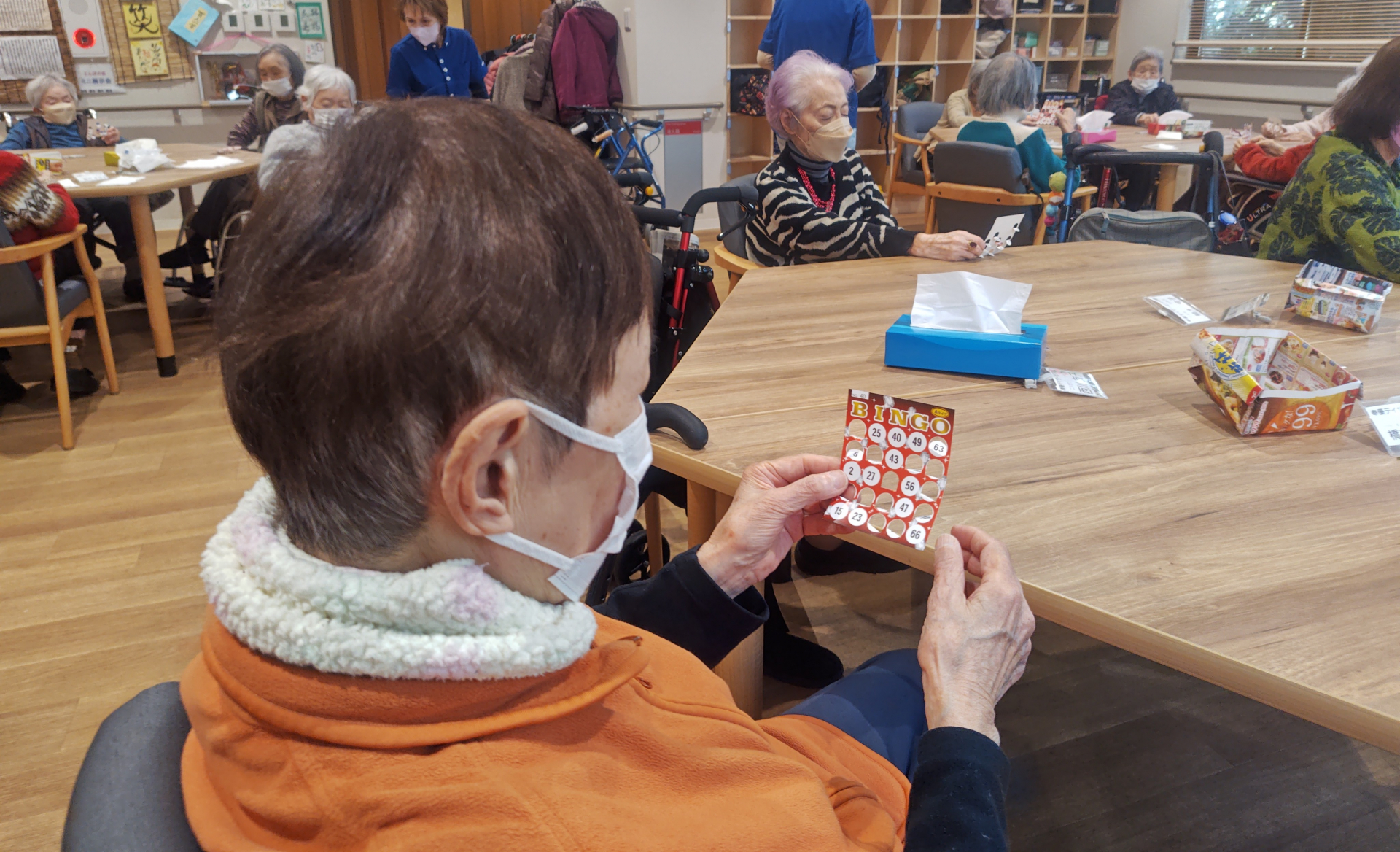 午後のレクリエーションの最後は「ビンゴゲーム」!豪華賞品を用意しましたが、GETされましたか?