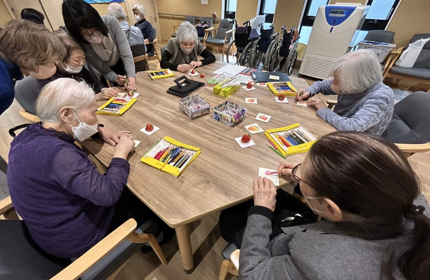 本日も臨床心理士の先生をお招きして臨床美術が実施されました。専門家の指導を受ける事でより効果的な体験が出来るそうです。