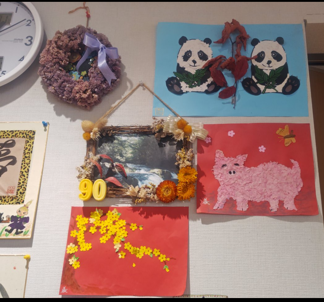 本日は手工芸俱楽部の紹介です。前回の昨年のHP【3/10参照】に続く第3弾です。ご利用者様のF様が先生となっていろいろな作品が創り出されます。